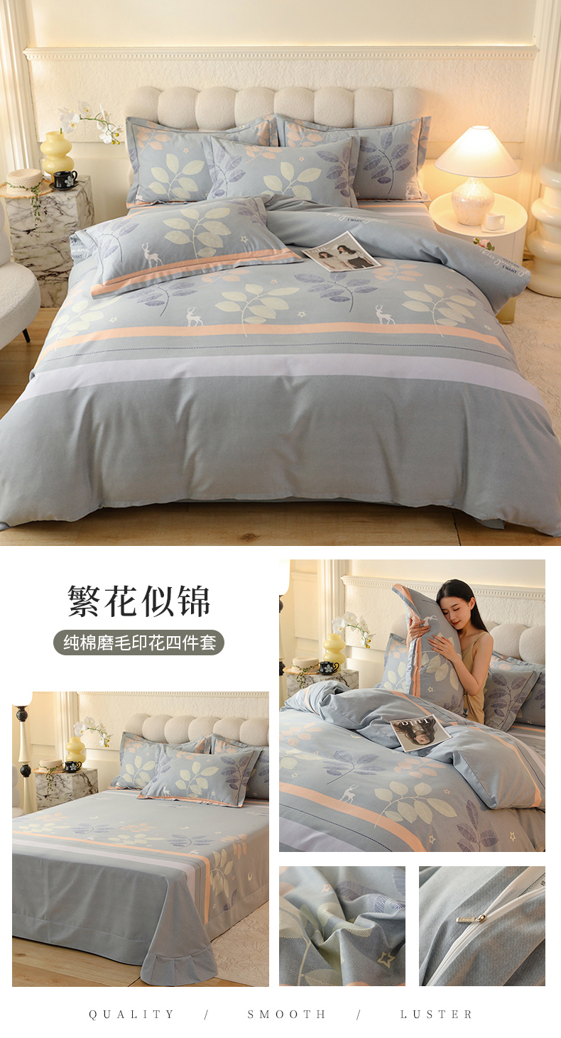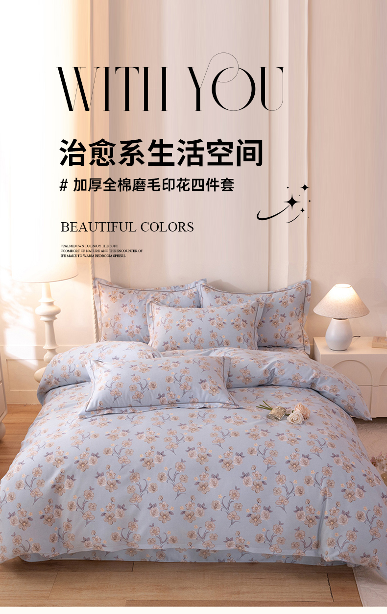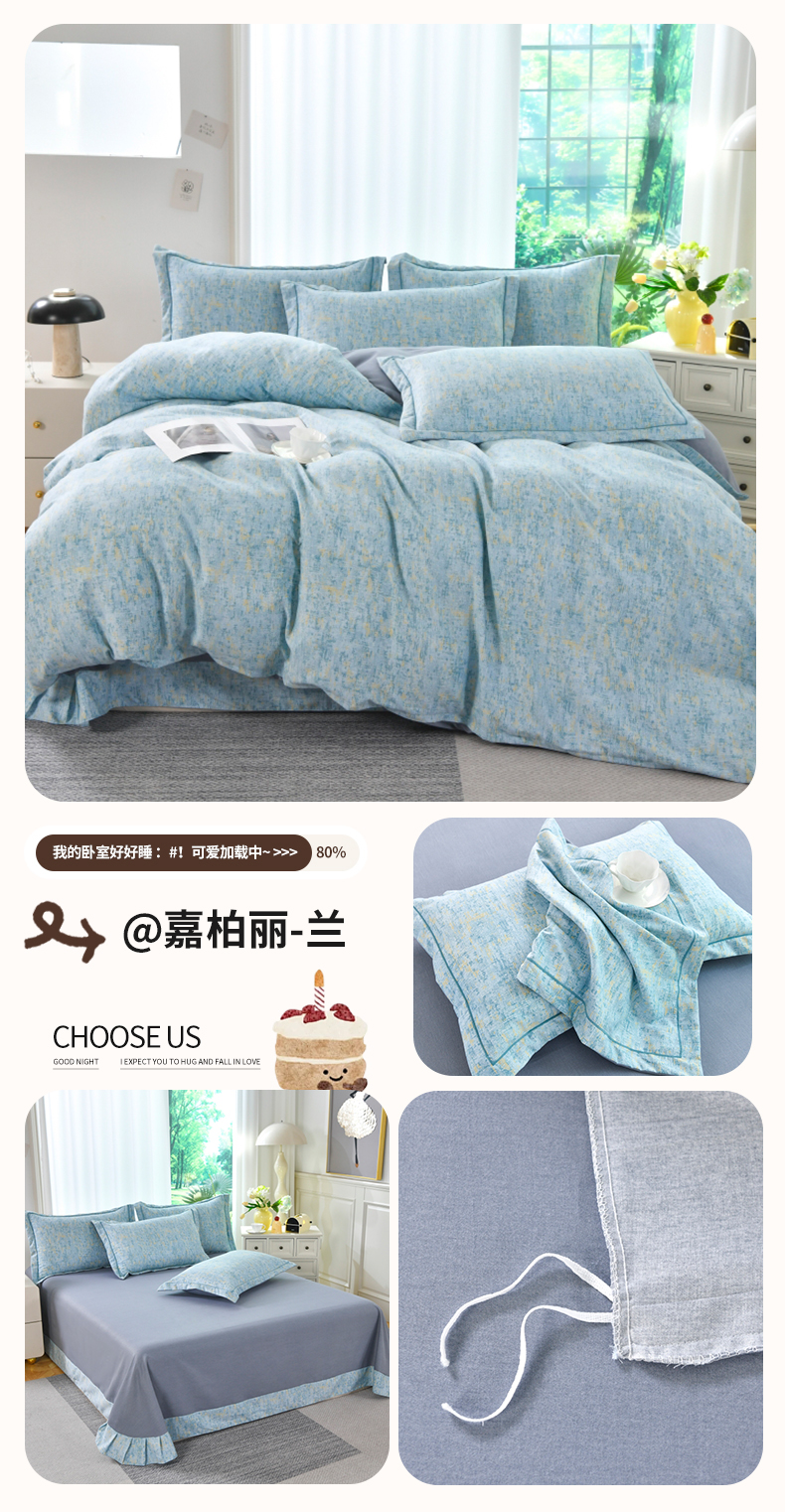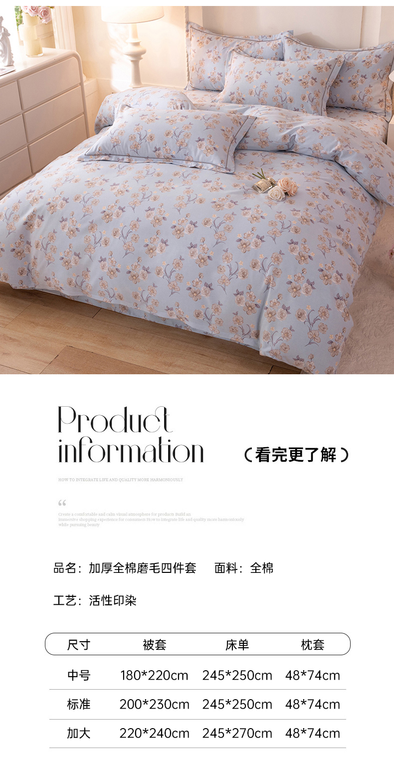 当前位置: 91家纺网 > 商品网购 > 床品套件 > 四件套 > 全棉普通四件套 > 磨毛世家家纺 2026新款多规格铂金磨毛纯棉加厚全棉磨毛四件套 香雪海-蓝