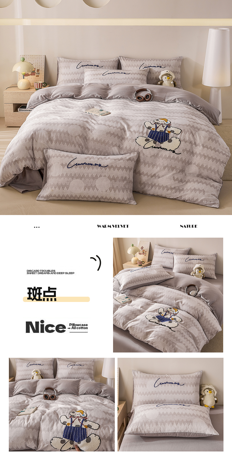 (总)宜家坊 2023新款小清新加厚印花牛奶绒四件套,简单款-彩色波点,简单款-花香四溢,简单款-花颜-白,简单款-花园女孩,简单款-加油鸭,简单款-锦上添花,简单款-快乐小狗,简单款-流星花园,简单款-米菲兔,简单款-秘密花园,简单款-牛油果,简单款-森林小熊,简单款-小恐龙,简单款-一见倾心,简单款-芝士狗狗,简单款-紫色花园