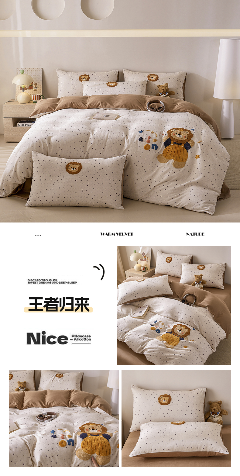 (总)宜家坊 2026直播热款卡通贴布绣加厚仿棉古棉单人双人单倍套三四件套,奥特兄妹,吉象三宝,美小蒂,萌萌兔绿,旺旺狗狗,熊猫卡皮