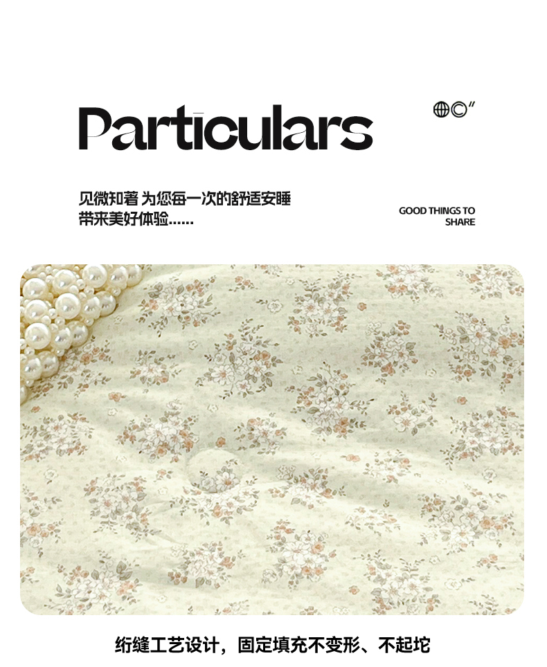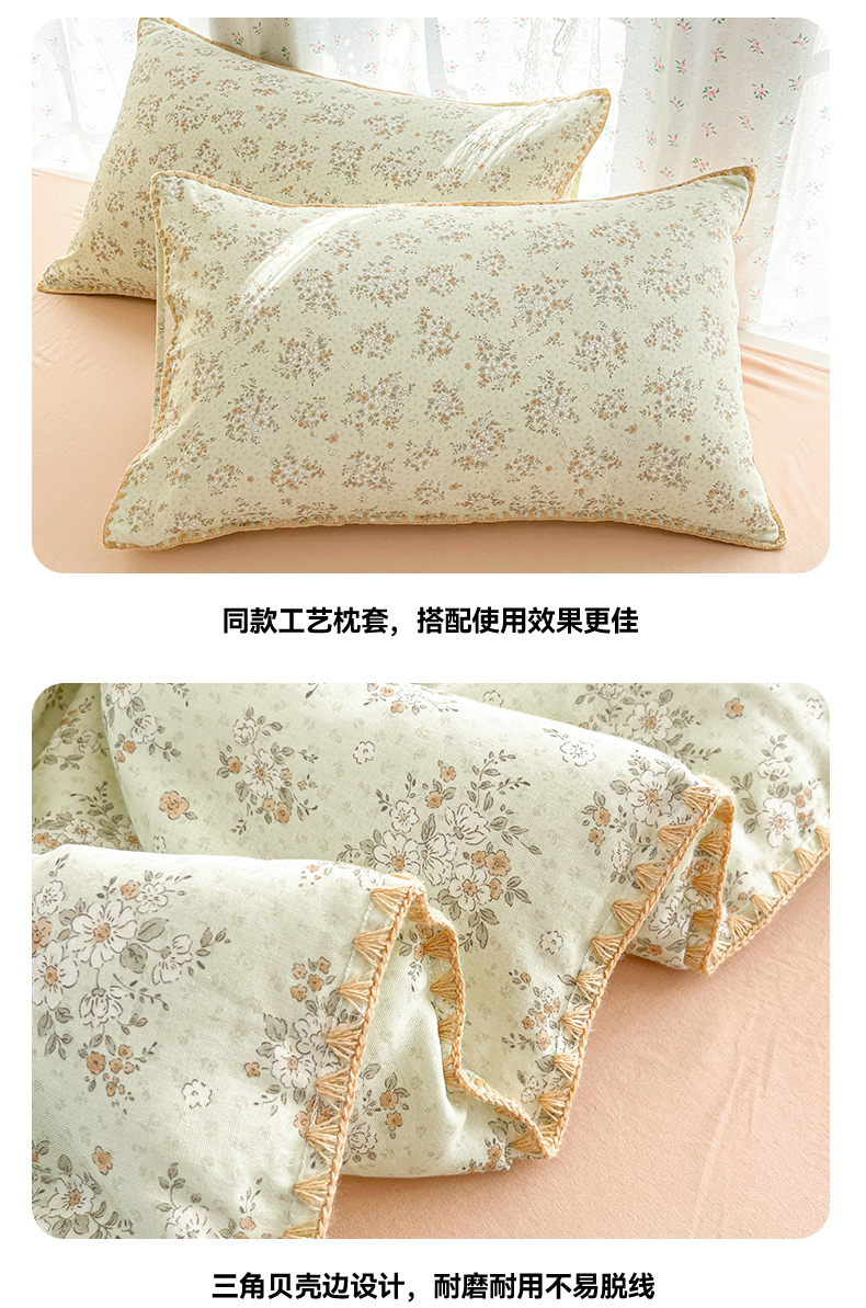• 91家纺网 家纺一手货源 找家纺 盛秋家纺 2026新款三角针水洗棉贝壳边印花夏被系列 花梦里+奶茶