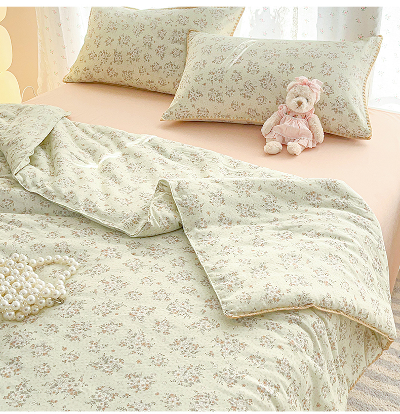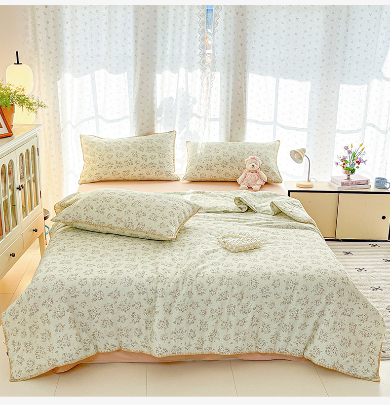 当前位置: 91家纺网 > 商品网购 > 被子 > 普通夏被 > 盛秋家纺 2026新款三角针水洗棉贝壳边印花夏被系列 花梦里+奶茶