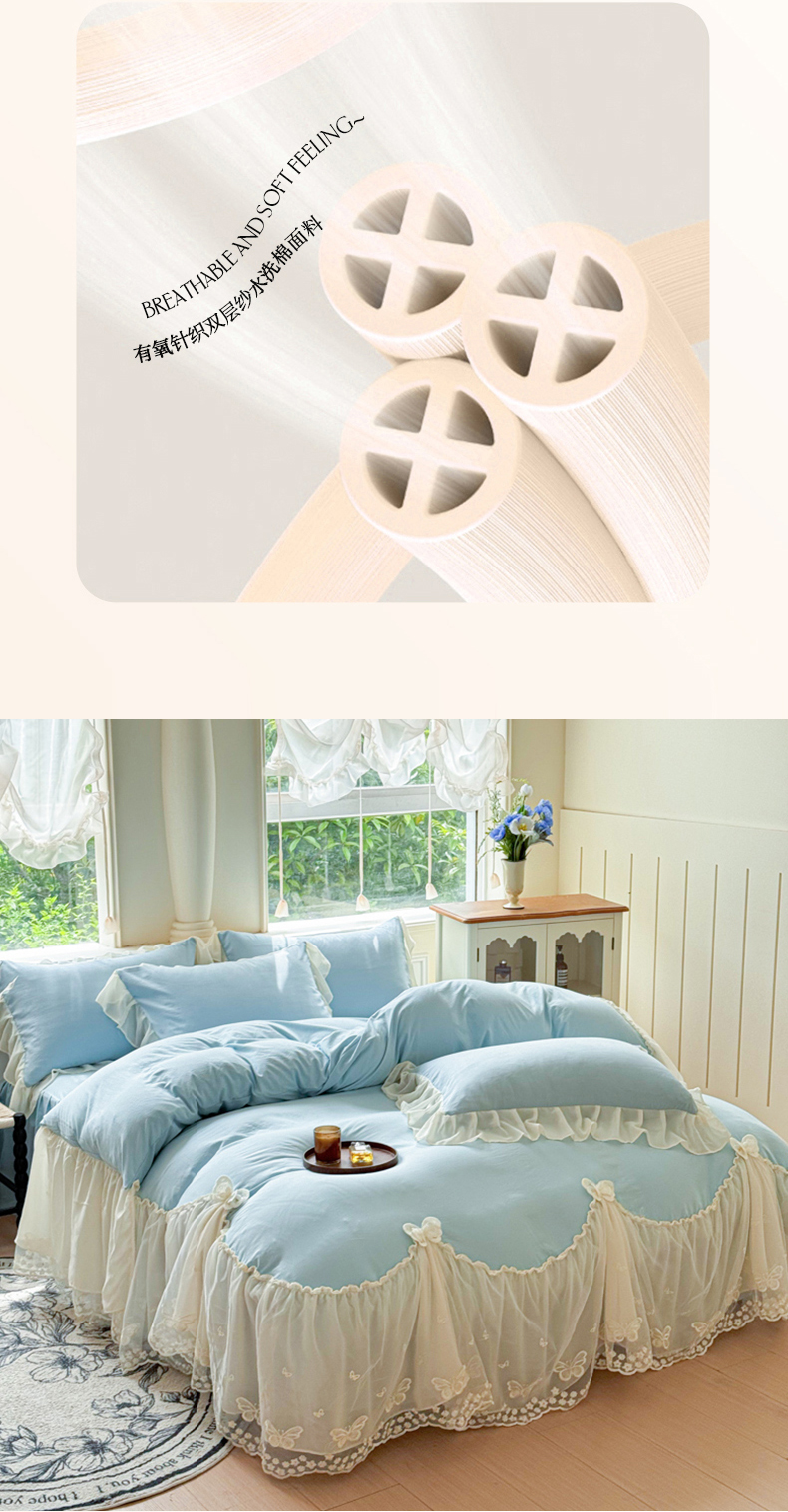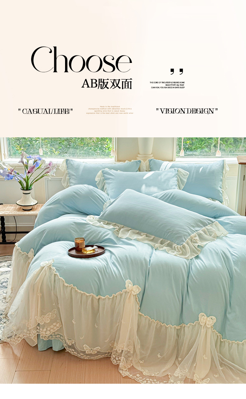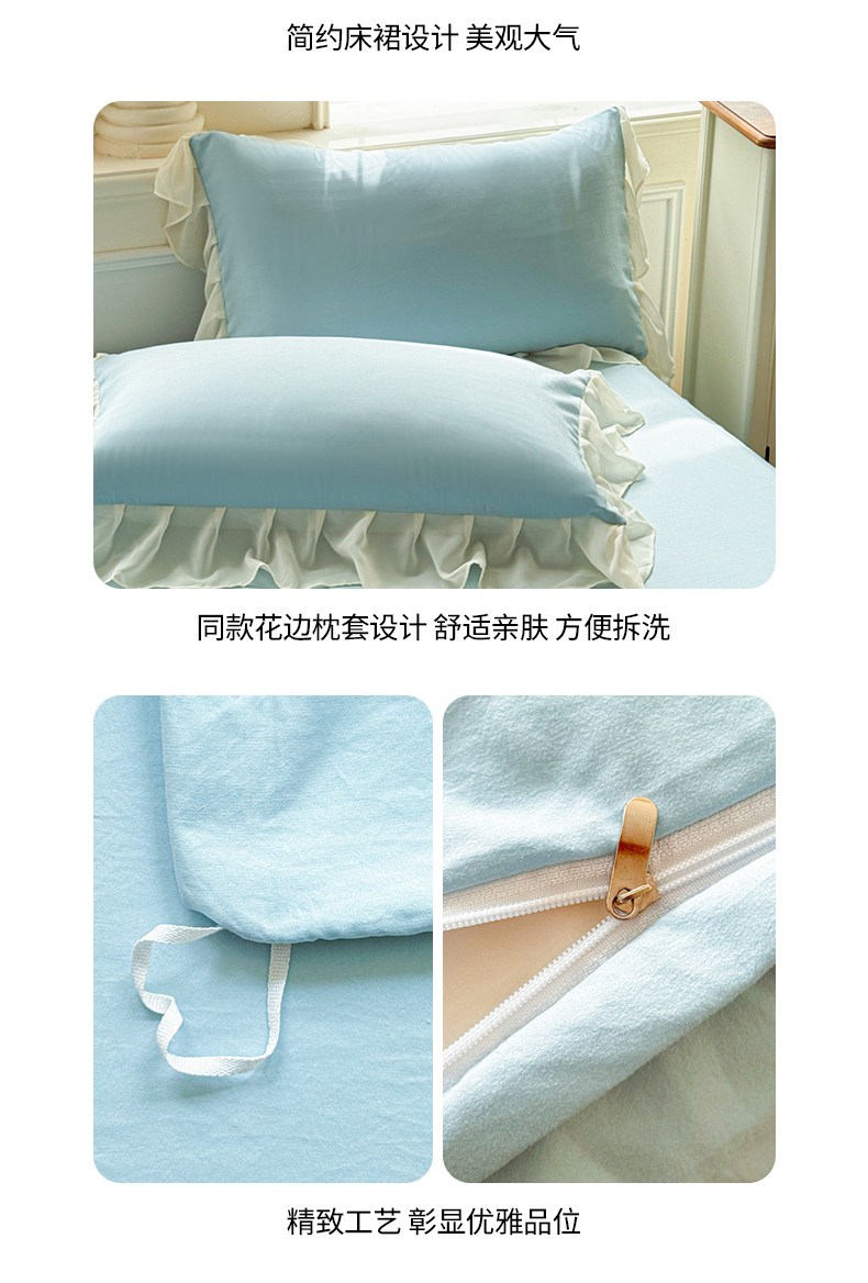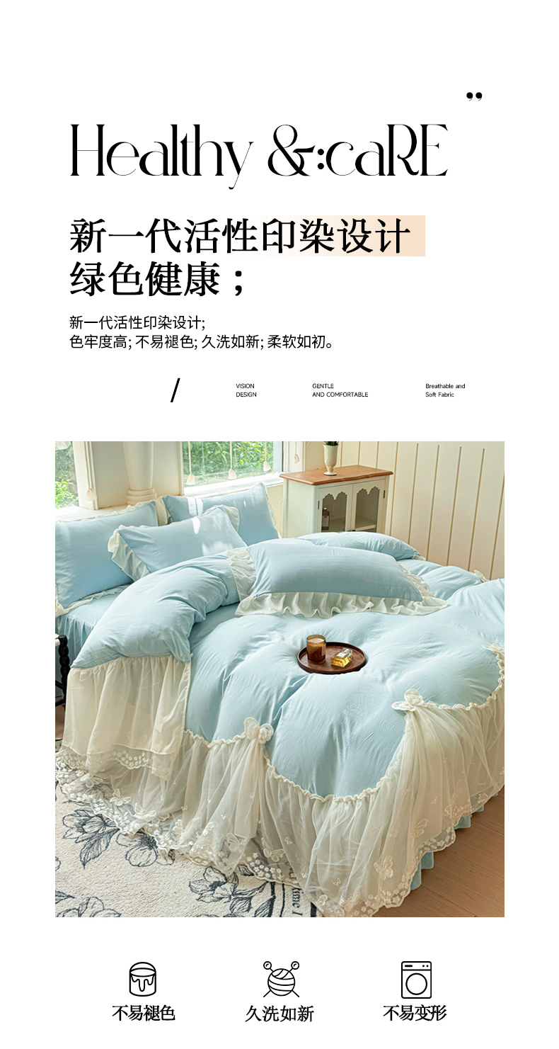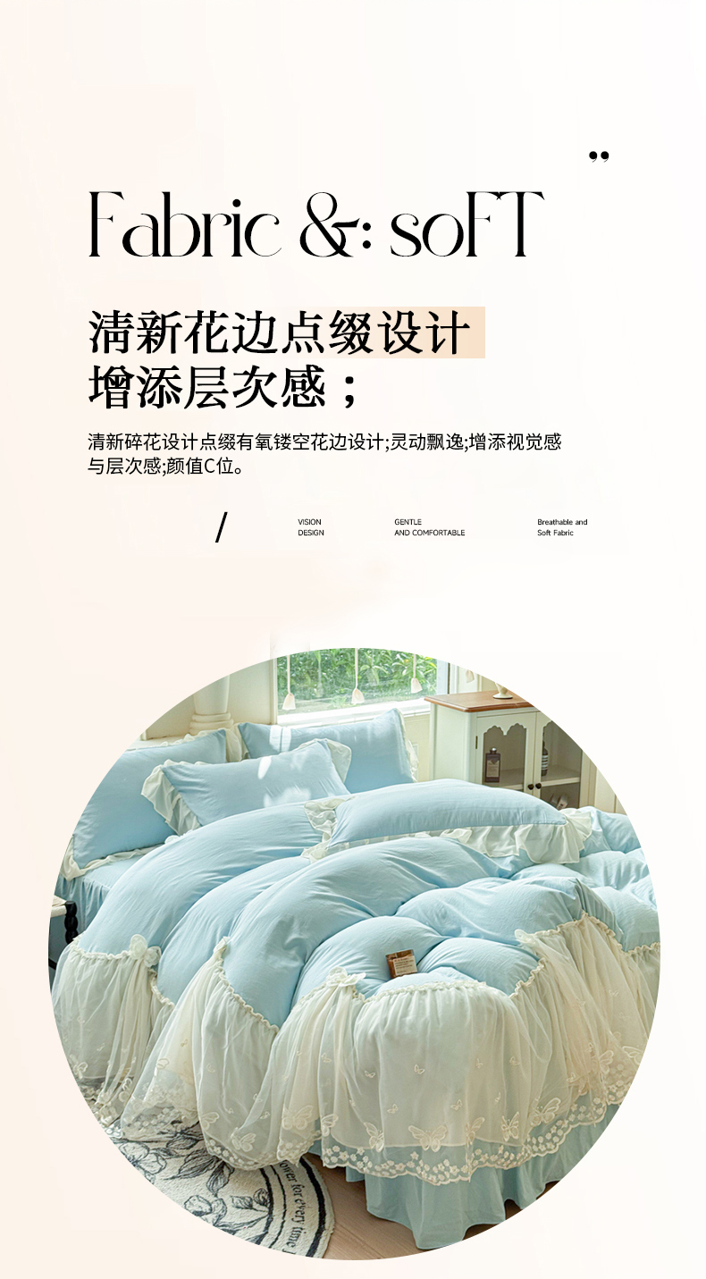 商品名称:睡美人 2026新款锦棉糯糯棉韩版蕾丝公主款双层纱被套床裙四件套-翩翩起舞 翩翩起舞-青春兰