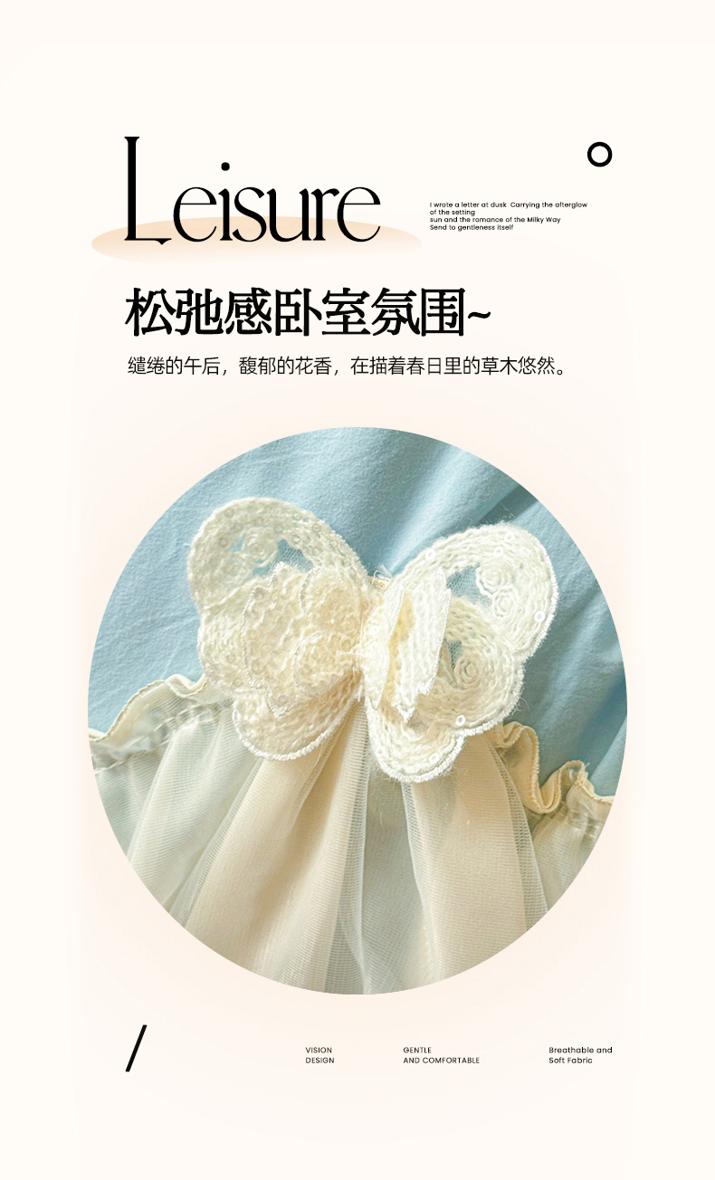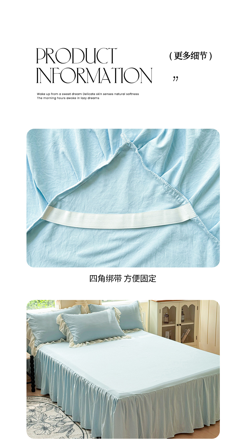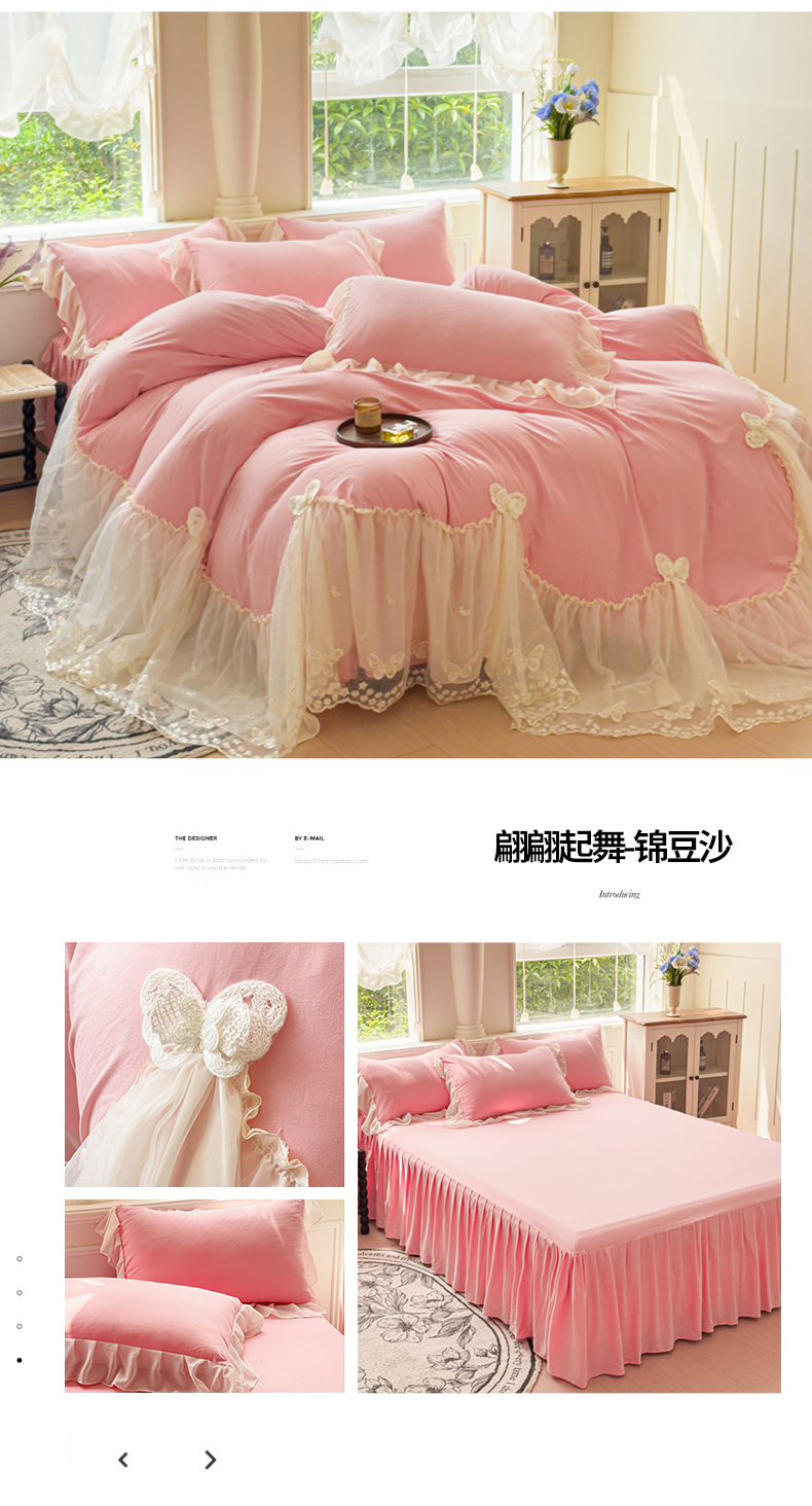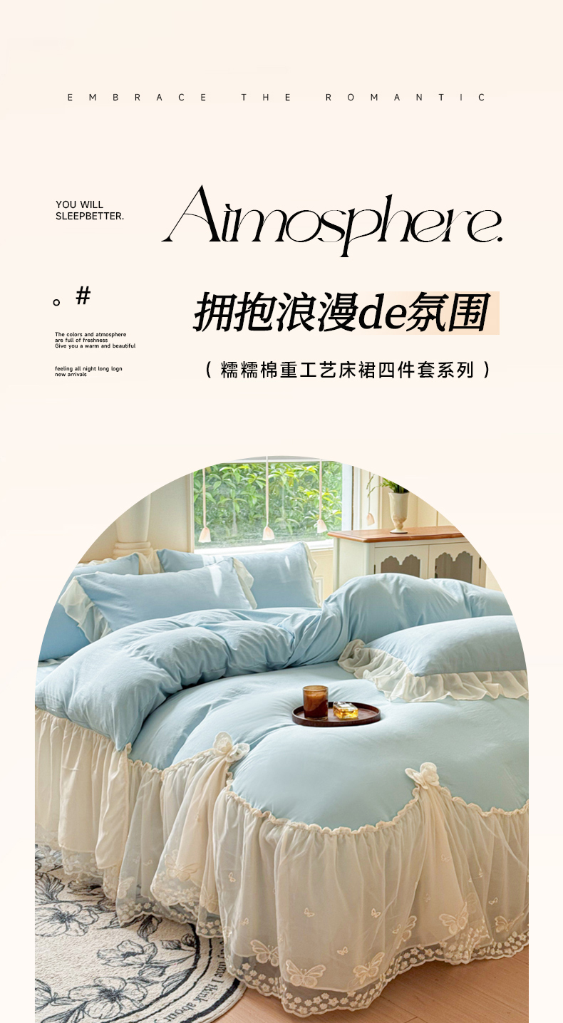商品名称:睡美人 2026新款锦棉糯糯棉韩版蕾丝公主款双层纱被套床裙四件套-翩翩起舞 翩翩起舞-青春兰