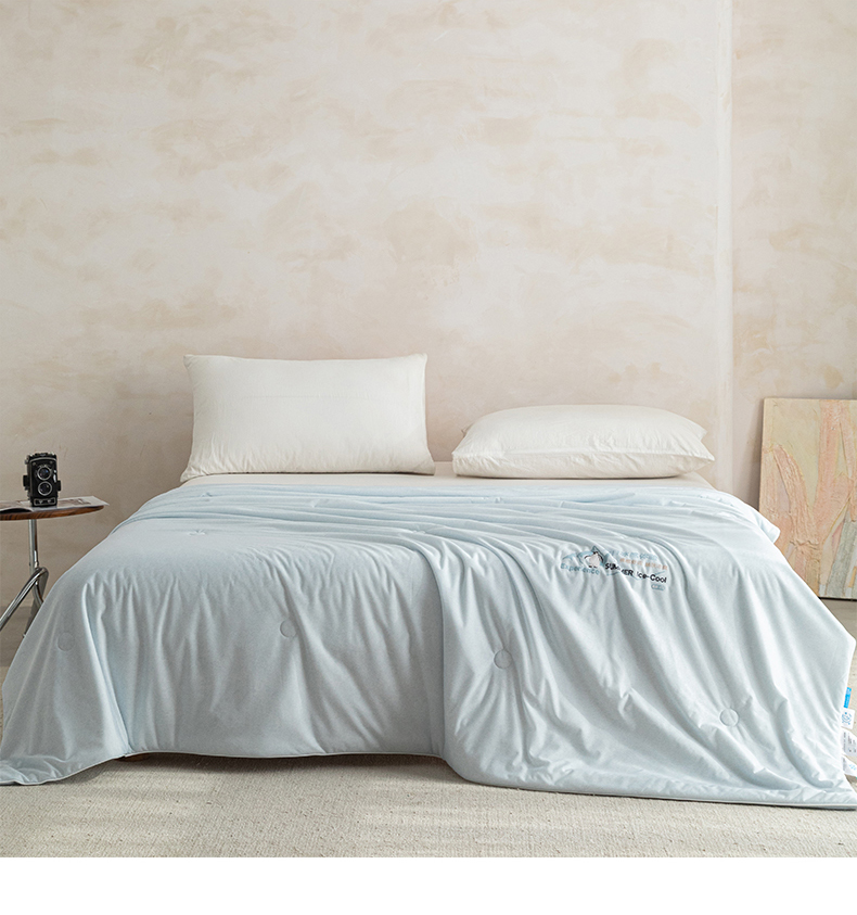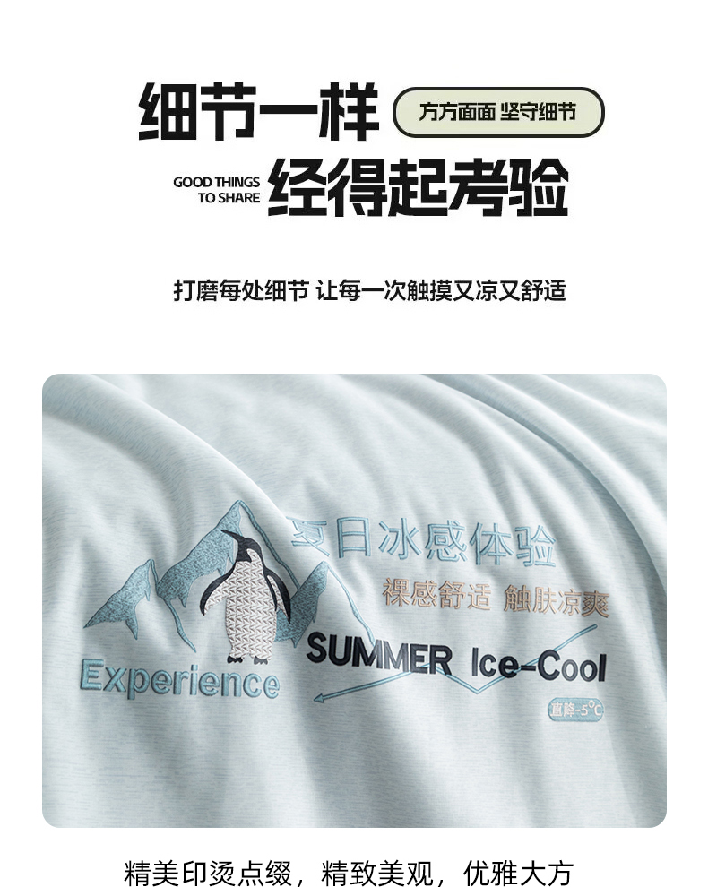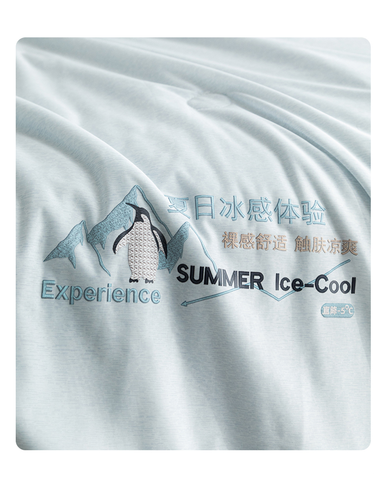 商品名称:亿莱鑫 2026春夏新款纯色仿锦氨凉感夏被夏凉被空调被 夏日企鹅-蓝