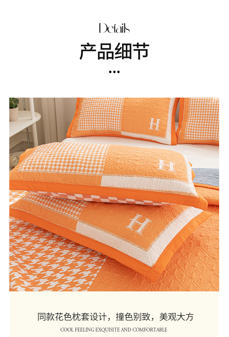 商品名称:麦田家纺 2026新款天丝绸大版数码印花单床盖床盖单件 千鸟格H-奶油橘