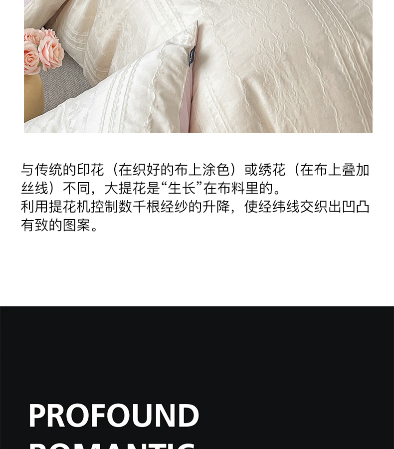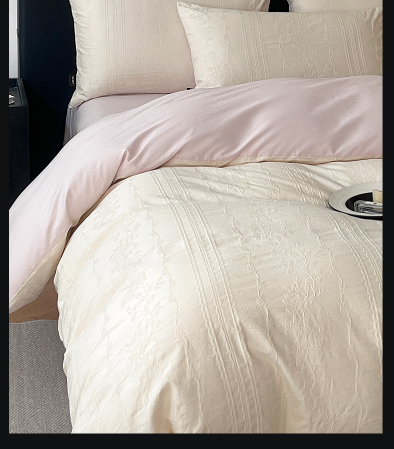卡姿家纺 2026春夏全棉高密厚织大提花轻奢四件套 花样甜心-奶白