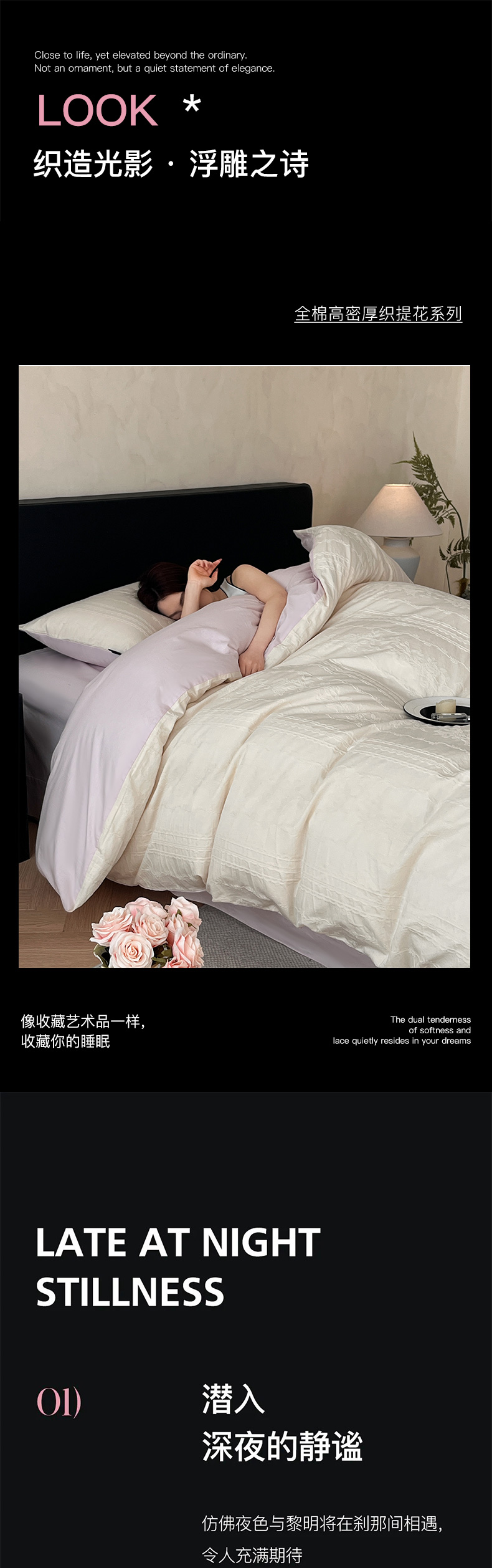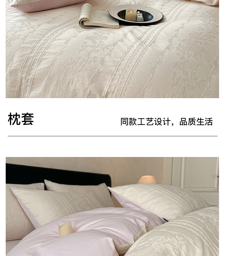 (总)卡姿家纺 2026春夏全棉高密厚织大提花轻奢四件套,花香韵美-淡雅紫,花样甜心-奶白,焦野-奶绿,克拉拉-香槟驼,浪漫情缘-粉,露柯-丁香紫,沁香-湖绿,柔风香草-奶白,石烁-奶白,腰果素绘-香槟驼,伊贝卡-银灰