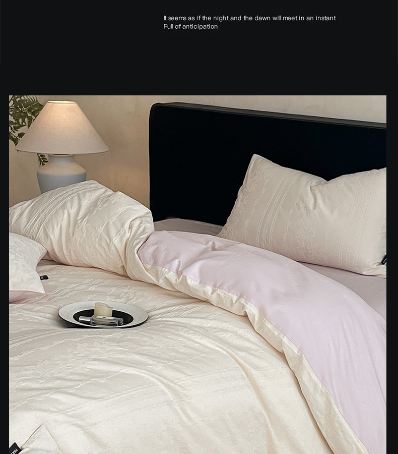 商品名称:卡姿家纺 2026春夏全棉高密厚织大提花轻奢四件套 花样甜心-奶白