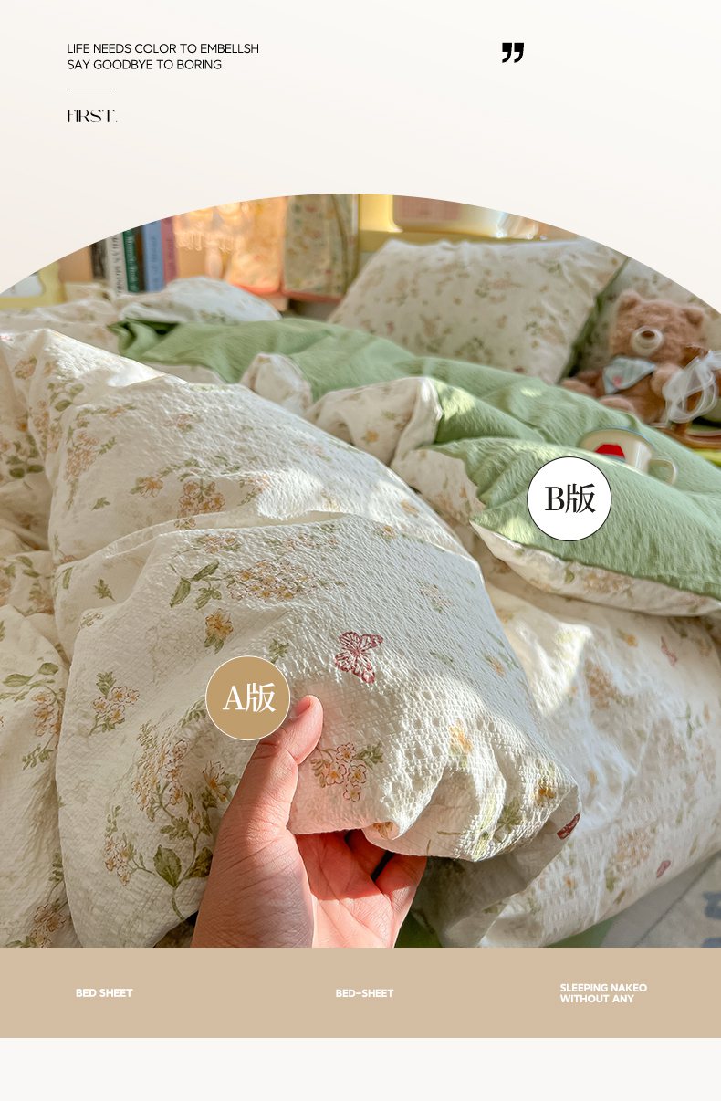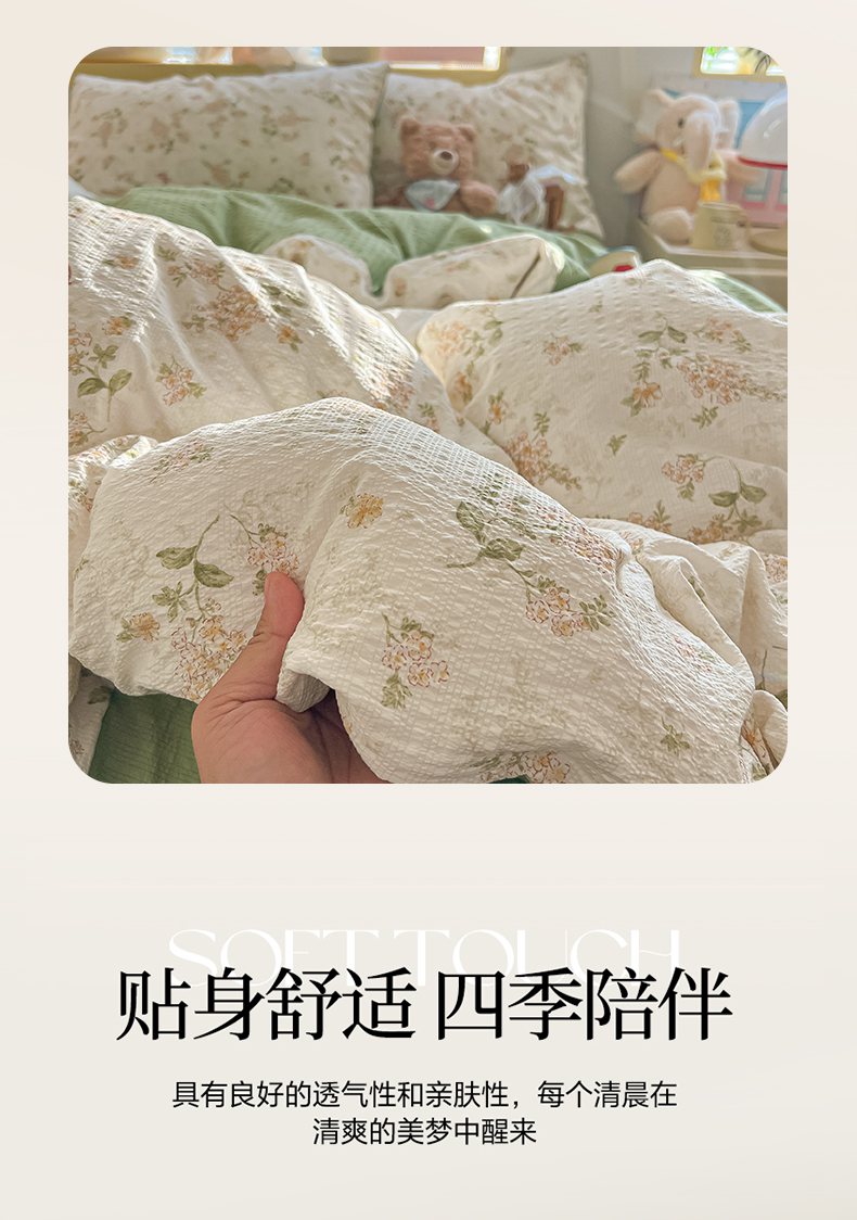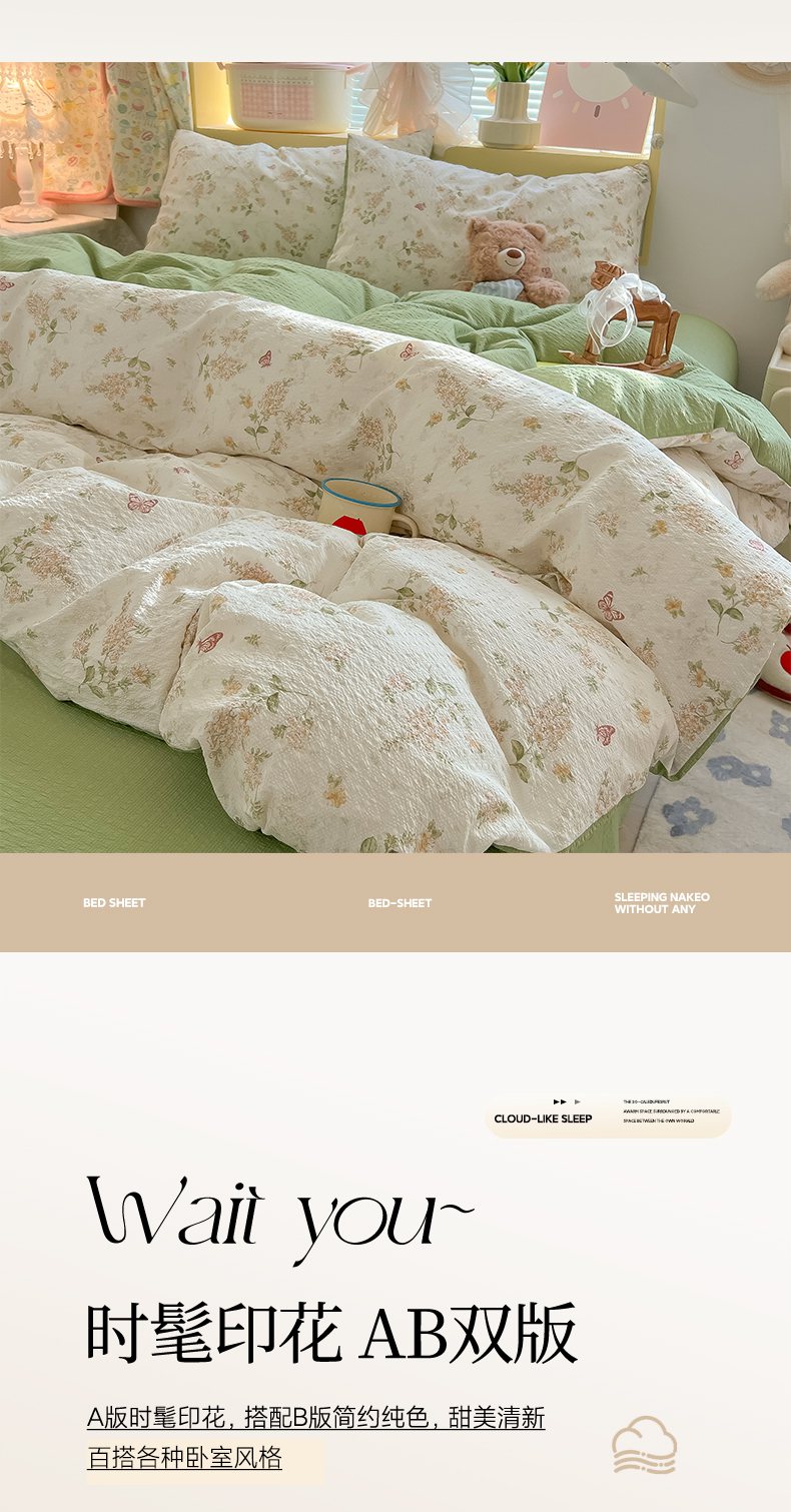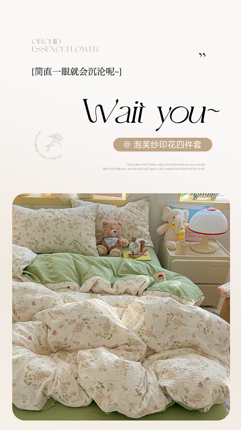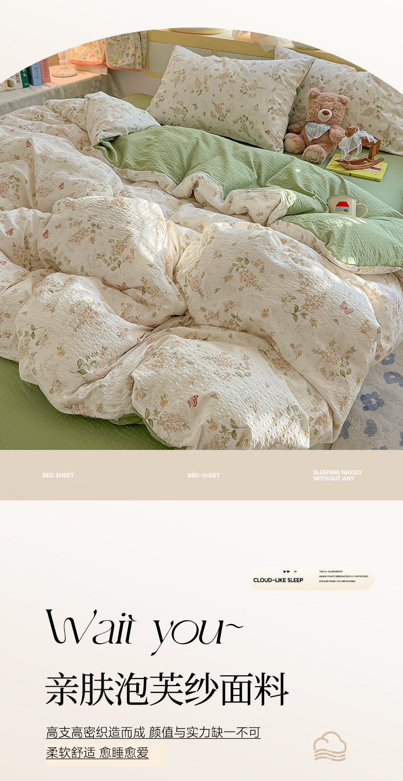 当前位置: 91家纺网 > 商品网购 > 床品套件 > 四件套 > 其它四件套 > 韩巢家纺 2026新款泡芙纱四件套 蝶栖柔花