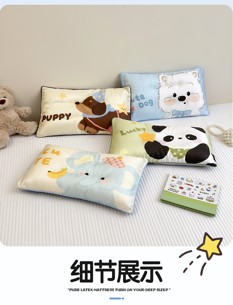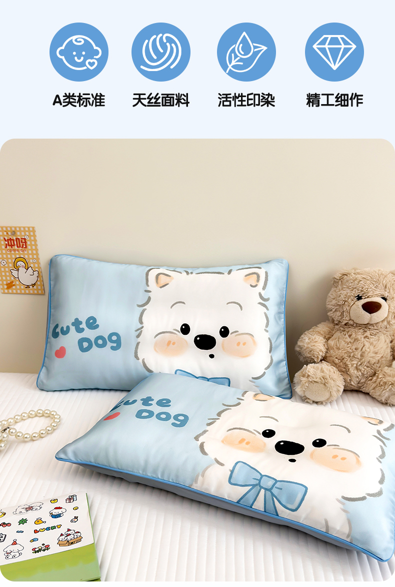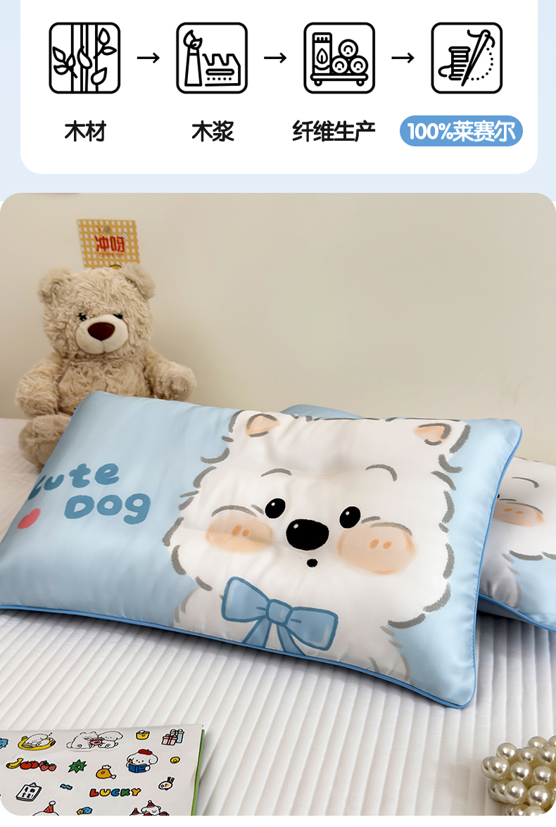 (总)雯豆家纺 2026新款60支蓝精天丝枕套儿童卡通枕芯定位大版枕头套,天丝-饼干熊,天丝-粉粉兔,天丝-快乐小狗,天丝-旺财,天丝-象嘟嘟,天丝-小恐龙,天丝-熊猫花花,天丝-音乐熊