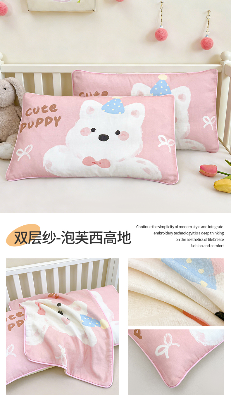 (总)雯豆家纺 2026新款全棉双层纱布枕套儿童卡通枕芯定位纯棉大版枕头套,双层纱-欢乐小狗,双层纱-快乐熊,双层纱-腊肠狗,双层纱-萌萌狗,双层纱-泡芙西高地,双层纱-甜甜兔,双层纱-顽皮狗,双层纱-小恐龙,双层纱-小熊猫