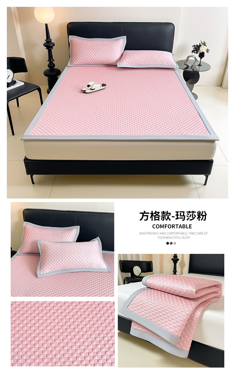 商品名称:雯豆家纺 2026新款A类PE凉席三件套冰豆豆席A类纯色凉豆豆席子可水洗空调软席 方格款-玛莎粉