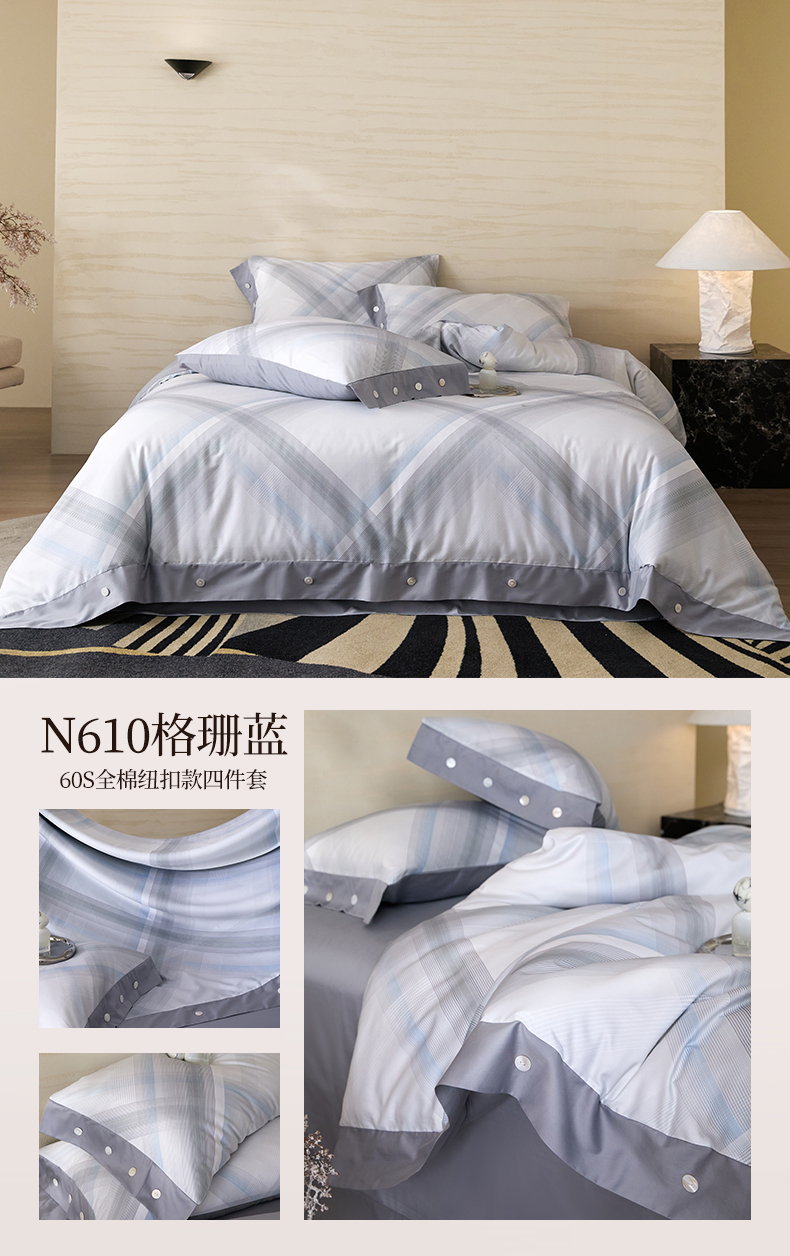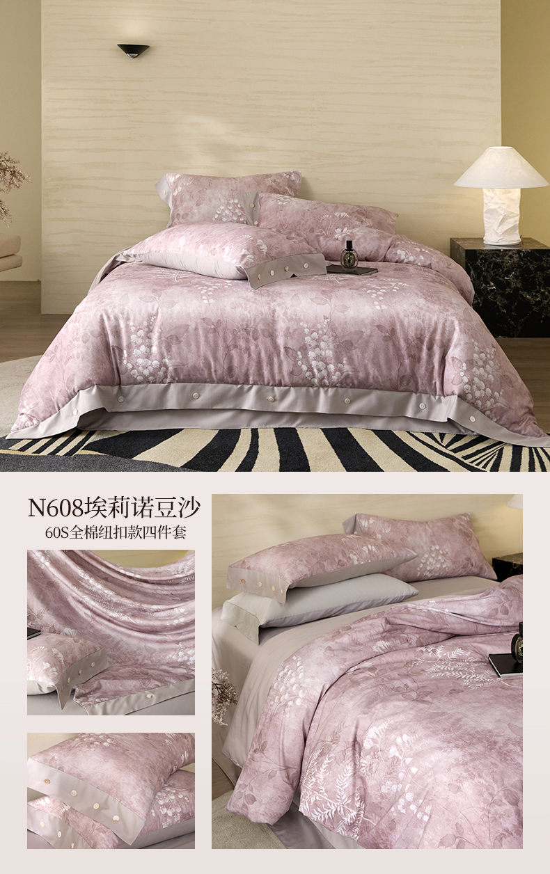 当前位置: 91家纺网 > 商品网购 > 床品套件 > 四件套 > 长绒棉四件套 > 梧桐树 2026新款60支长绒棉纯棉宽边纽扣系列四件套 N608埃莉诺豆沙