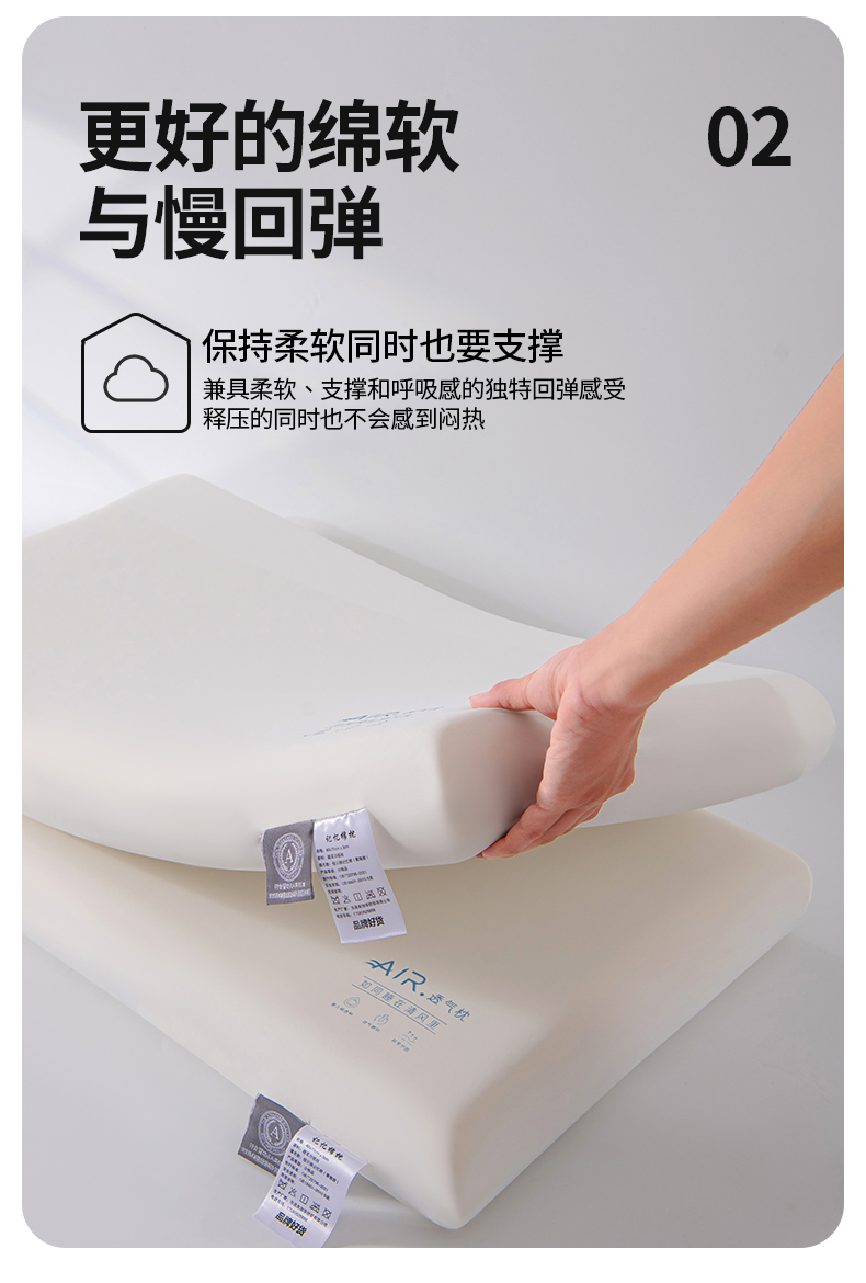 商品名称:(总)云梦枕居 2026新款两色记忆枕芯 记忆棉枕芯枕头 成人太空记忆 儿童记忆枕 低枕 air慢回弹枕芯