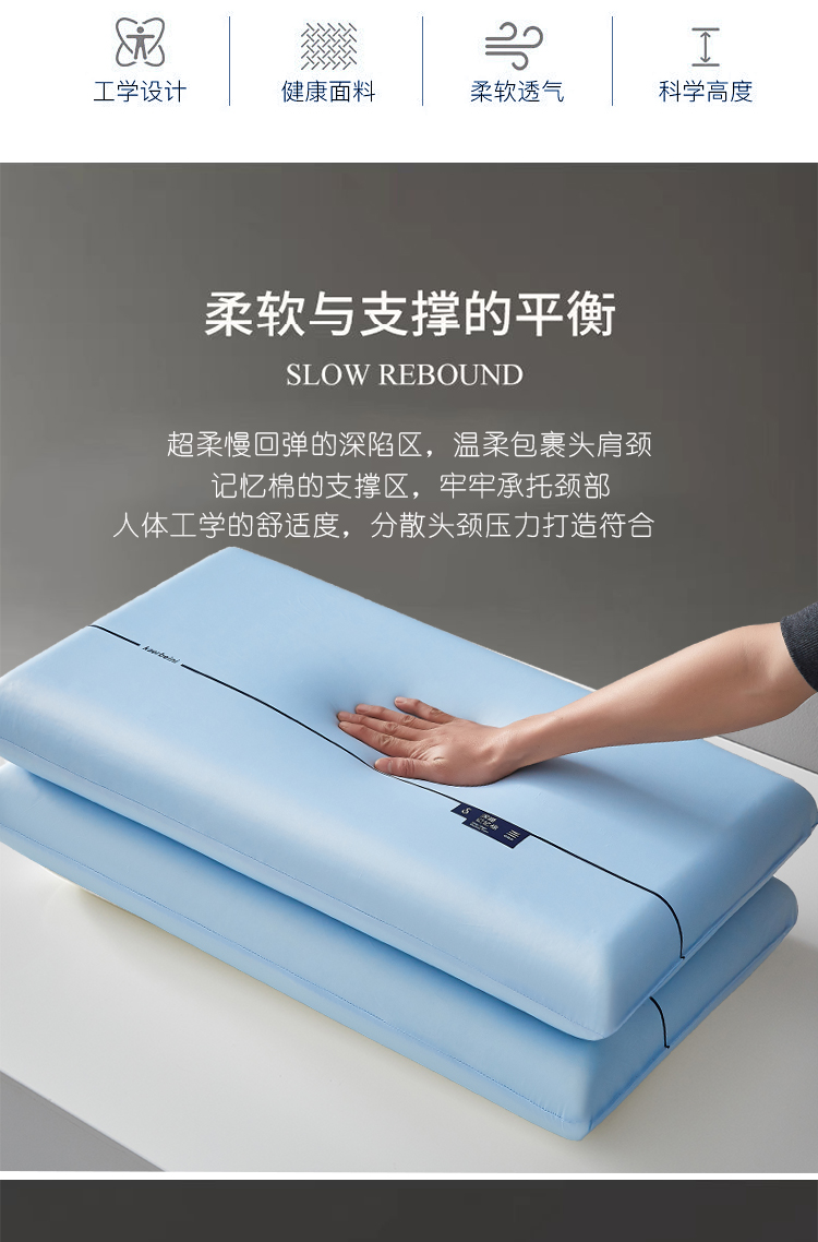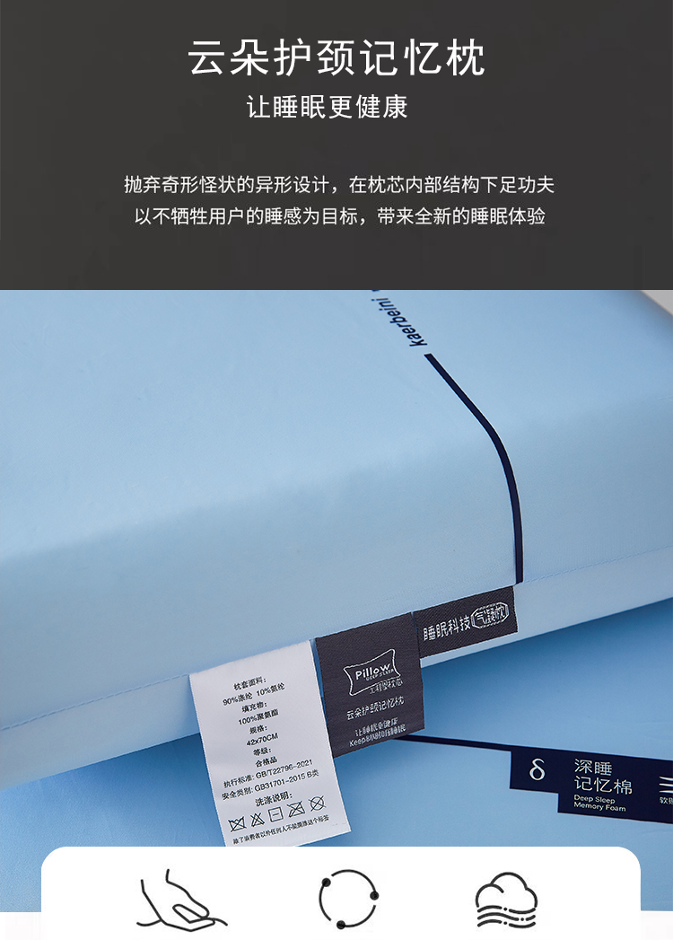 当前位置: 91家纺网 > 商品网购 > 枕头/枕芯/保健枕/颈椎枕 > 枕头枕芯 > 云梦枕居 2026新款零压助眠深睡慢回弹记忆枕头枕芯 酒店面包枕云朵枕 蓝色