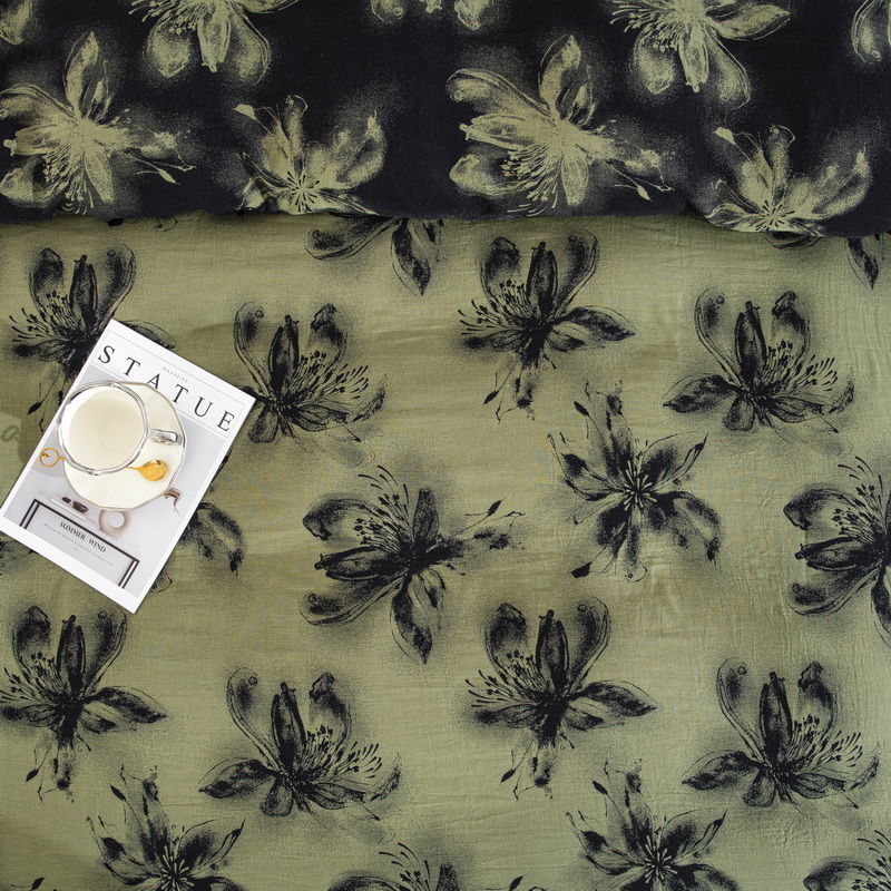 商品名称:仰望棉麻双层纱供应链 2026新款花蝴蝶-一花两色全棉色织双层纱纽扣款 黑蝴蝶