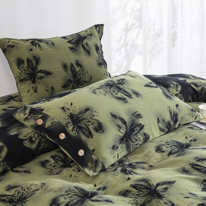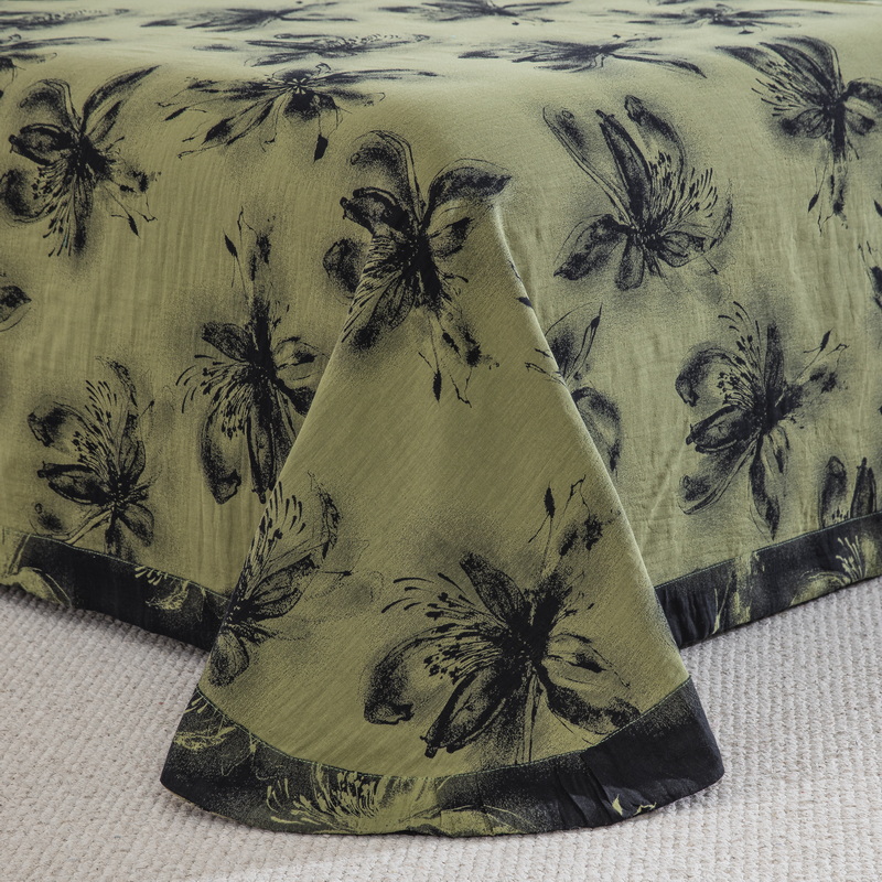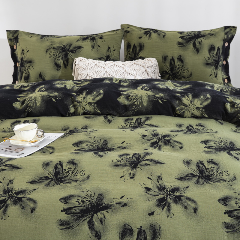 (总)仰望棉麻双层纱供应链 2026新款全棉色织提花四件套-绿漪枫舟,绿漪枫舟
