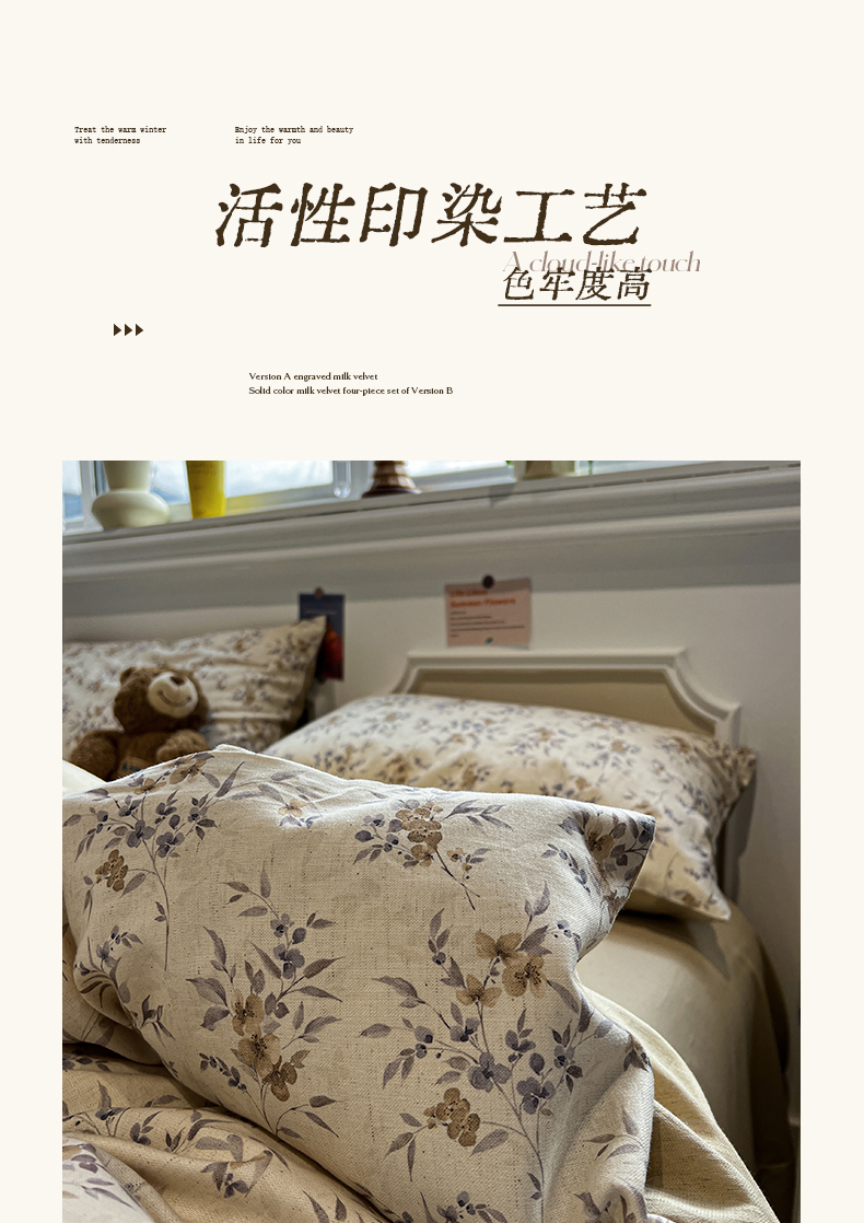 (总)忆生活家纺 2025秋冬新品软糯缇肤绒印花贝壳边四件套,卡拉-灰,南笙-咖,南笙-绿,浅夏-咖,素影-酒红,素影-紫