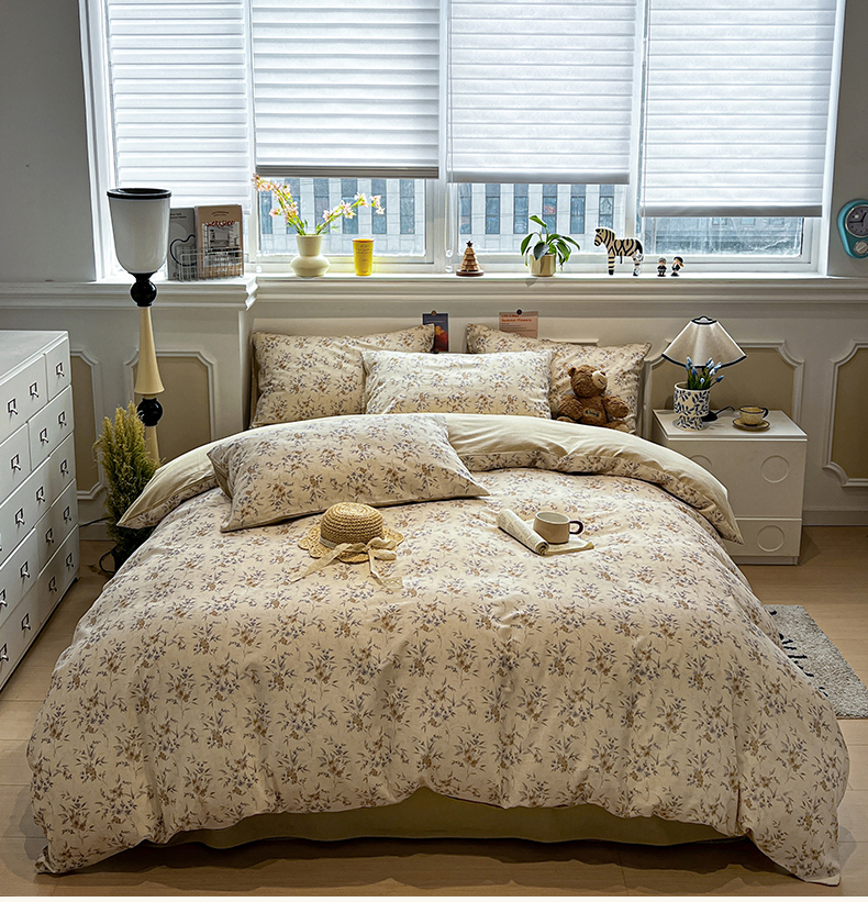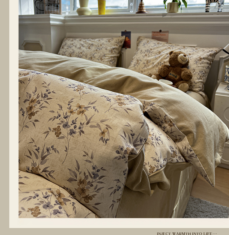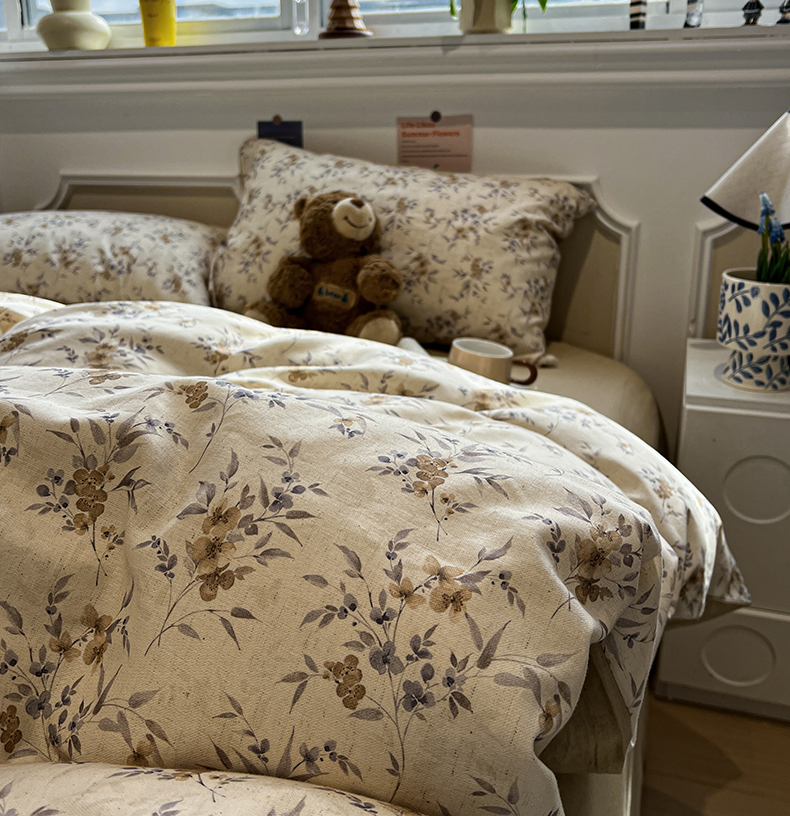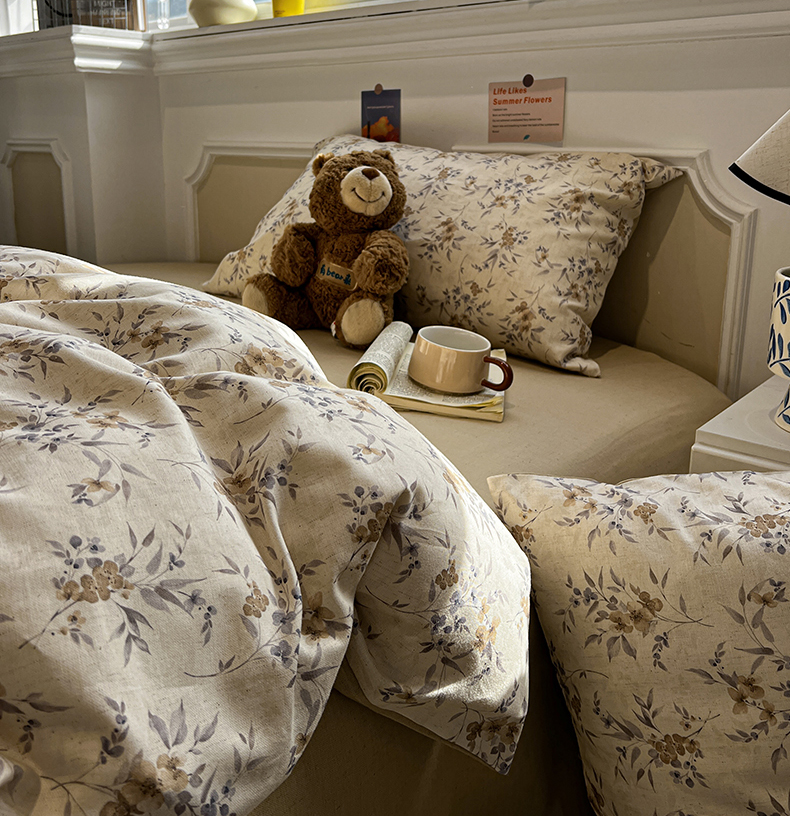 忆生活家纺 2026新款复古田园风棉麻四件套 夕颜