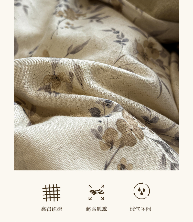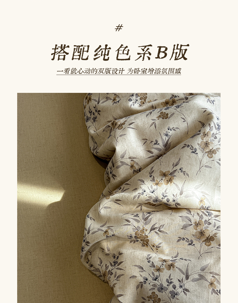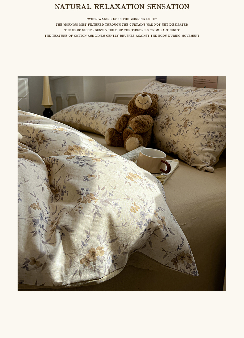 商品名称:忆生活家纺 2026新款复古田园风棉麻四件套 夕颜
