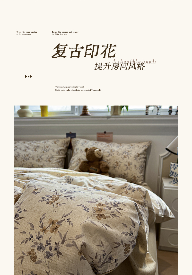 (总)忆生活 2025新款秋冬复古风全棉加厚磨毛四件套,简秋-咖,花汐,花颜-红,璃月-绿,漫枝-灰,漫枝-绿,骑士,芊墨,童年,玩伴,叶语,夜雨-咖