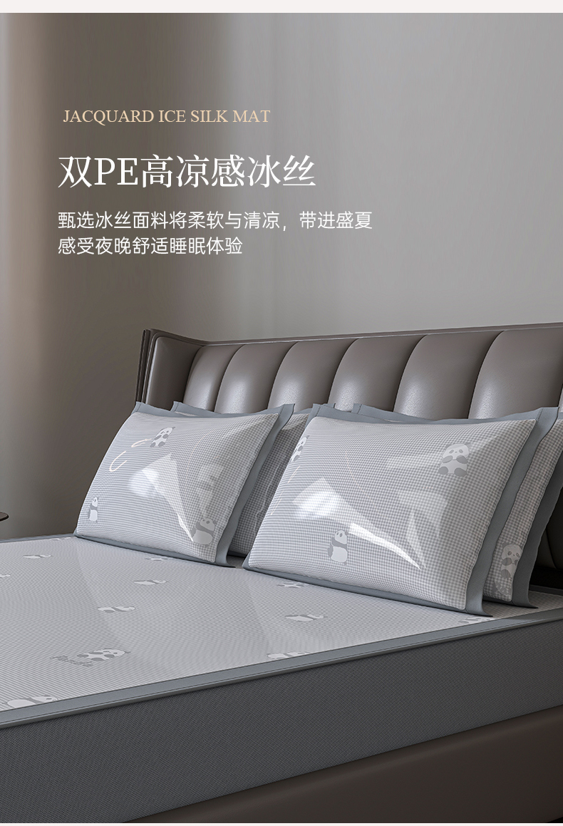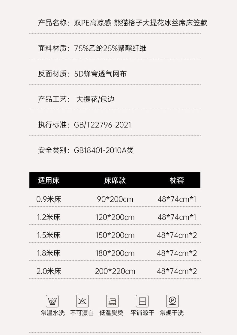 商品名称:小牛席业 2026新款双PE高凉感-熊猫格纹提花冰丝席(床笠款)凉席竹席藤席冰藤席乳胶席豆豆席 粉色