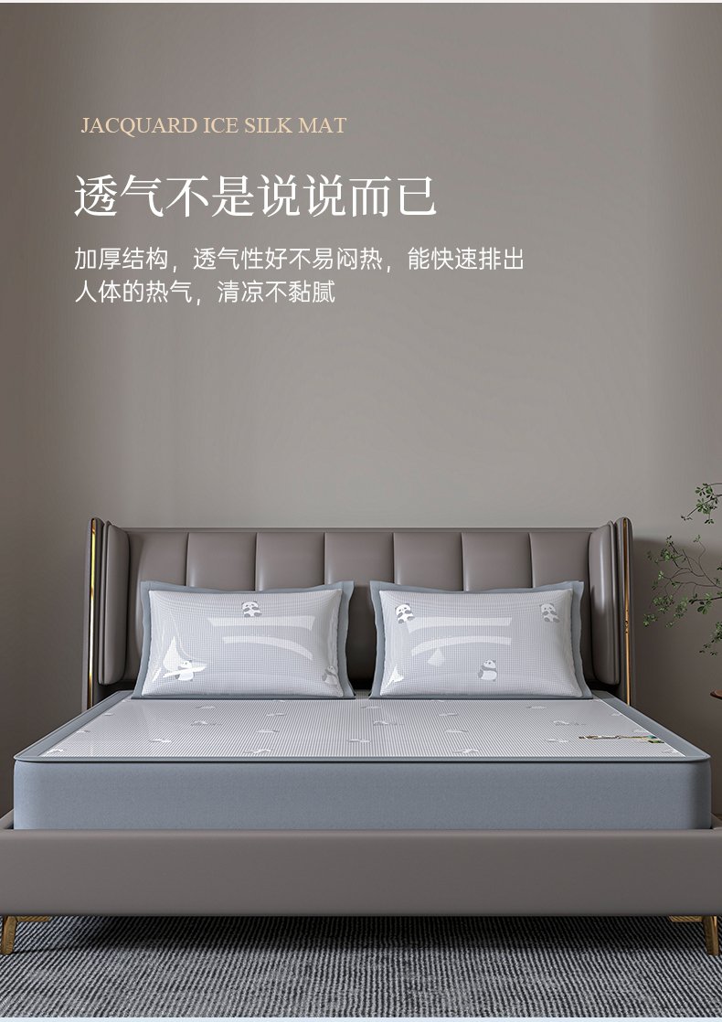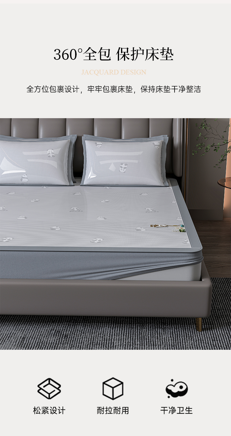 (总)小牛席业 2026新款半定位大提花凉感冰丝席(床笠款)凉席竹席藤席冰藤席乳胶席豆豆席,灰色,粉色,蓝色,香槟