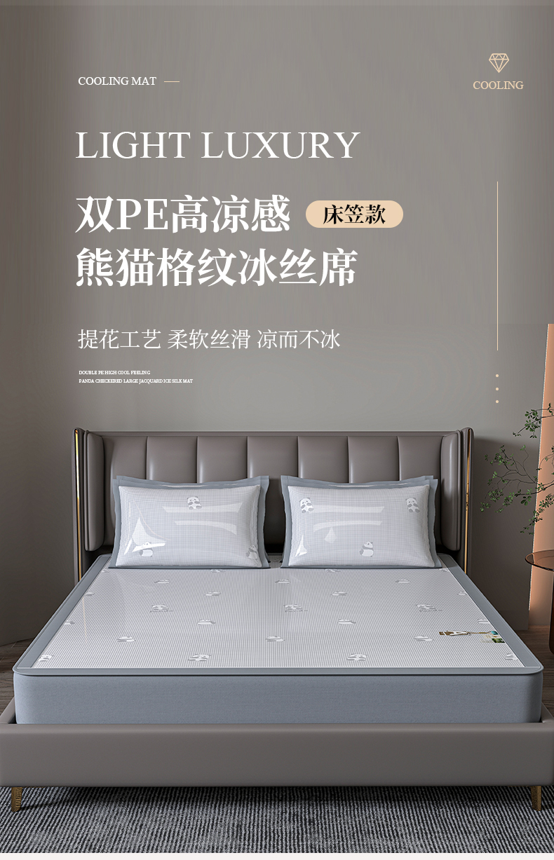 小牛席业 2026新款双PE高凉感-熊猫格纹提花冰丝席(床笠款)凉席竹席藤席冰藤席乳胶席豆豆席 粉色