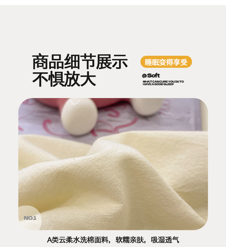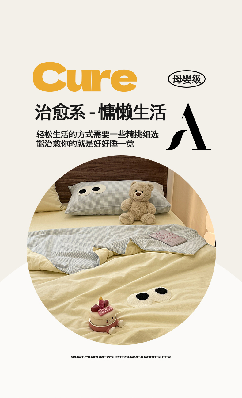 • 91家纺网 家纺一手货源 找家纺 桃心家居 2026春夏新款A类ins云柔水洗棉升级毛巾绣大眼睛大豆单夏被夏被四件套 水洗棉-大眼睛夏被奶黄小蓝格