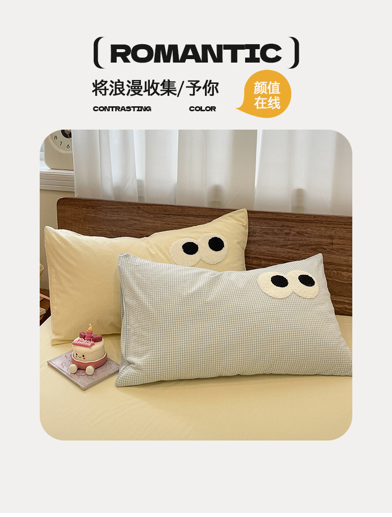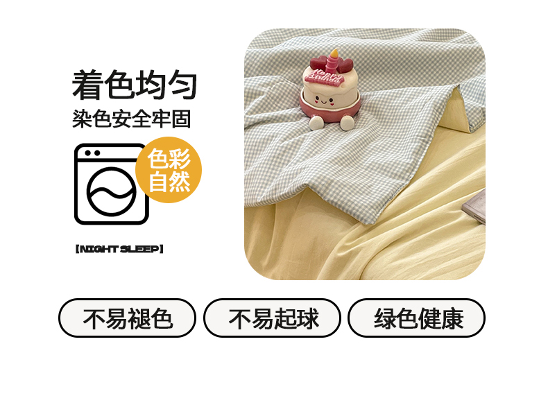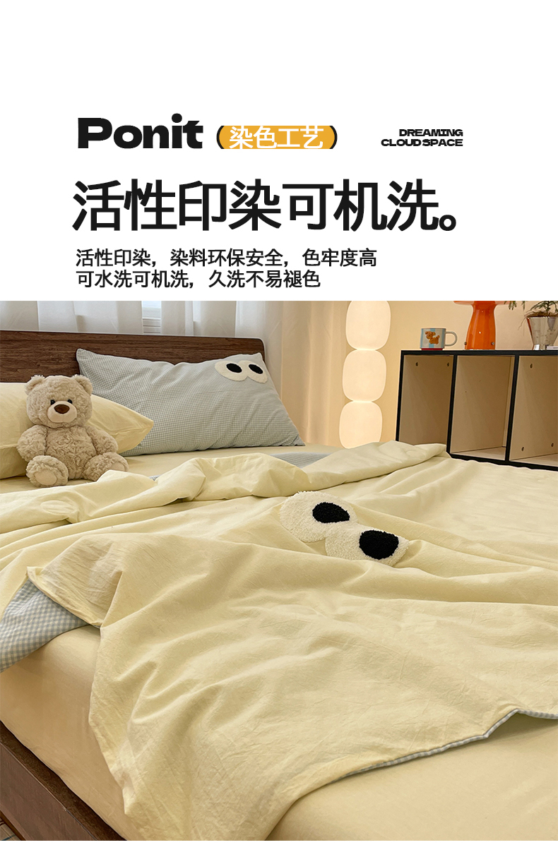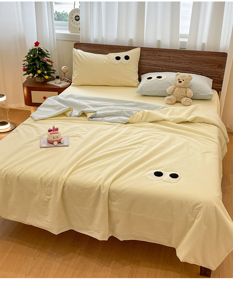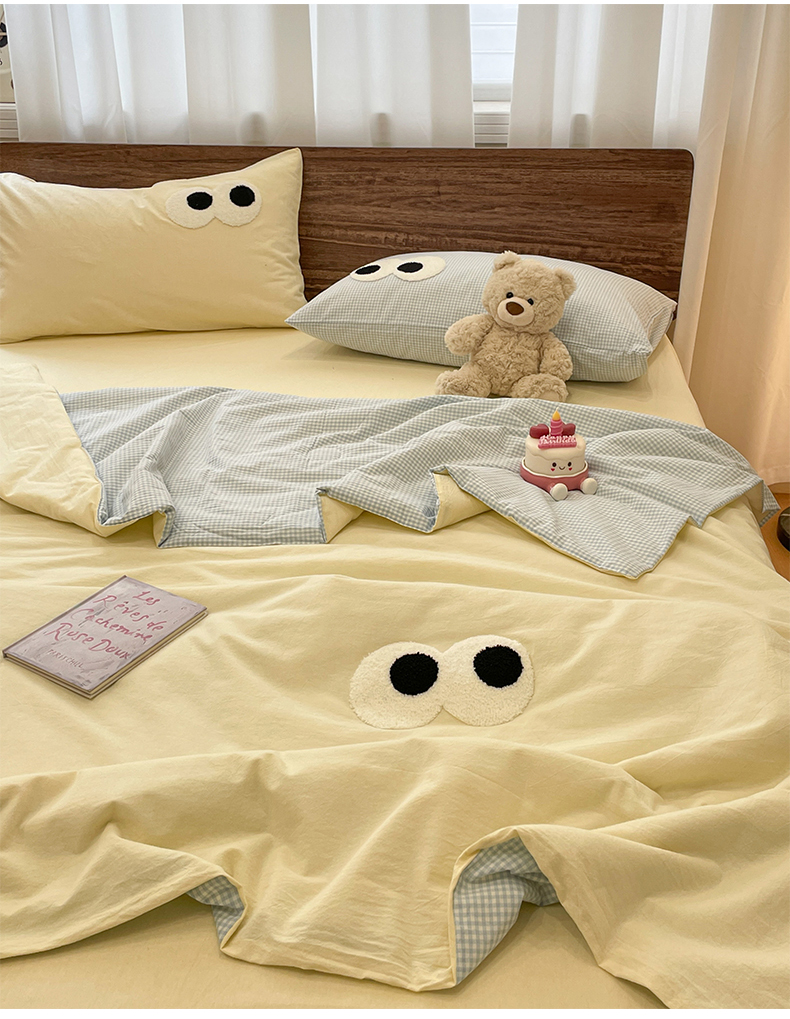 桃心家居 2026春夏新款A类ins云柔水洗棉升级毛巾绣大眼睛大豆单夏被夏被四件套 水洗棉-大眼睛夏被奶黄小蓝格