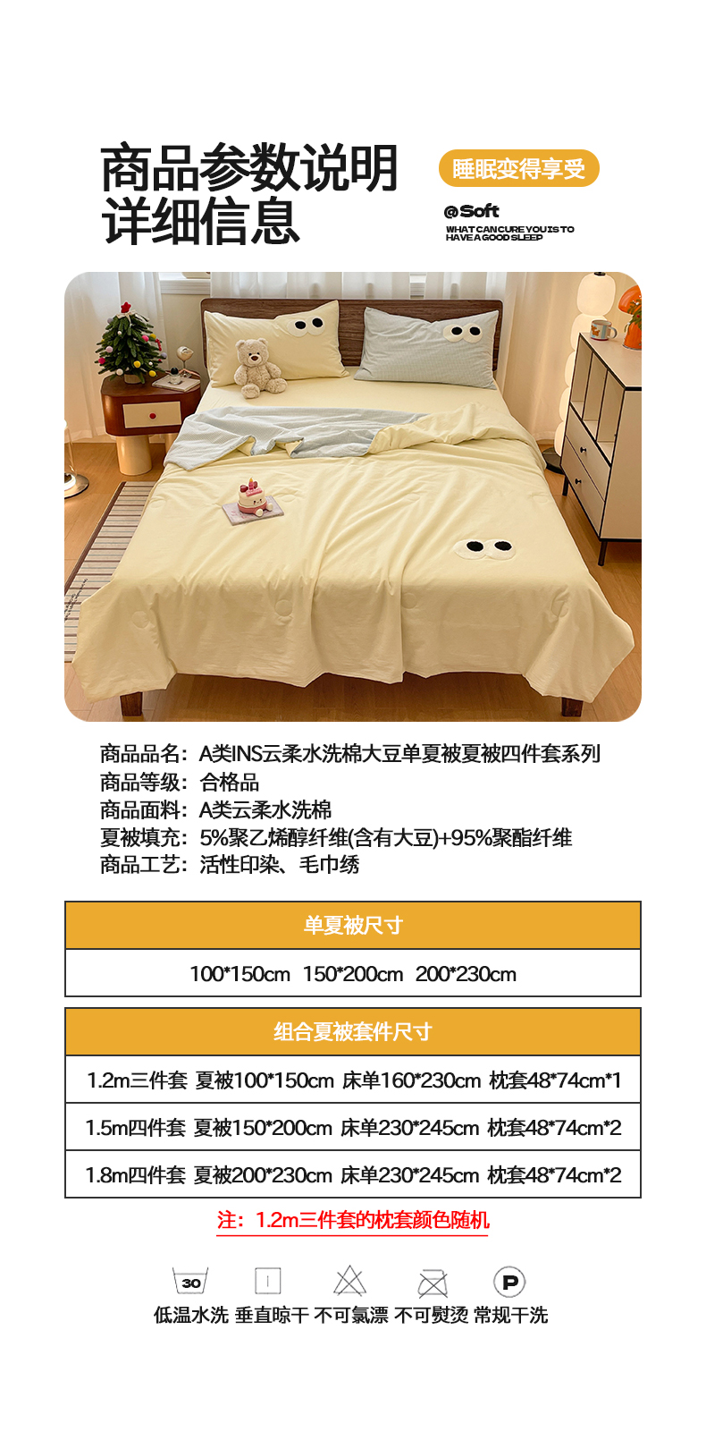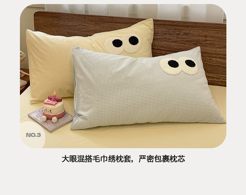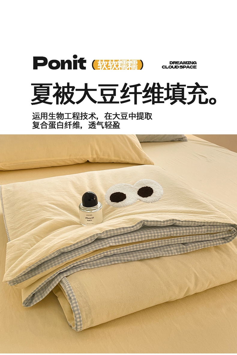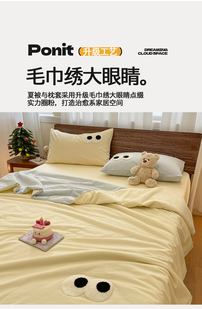 当前位置: 91家纺网 > 商品网购 > 被子 > 夏被 > 桃心家居 2026春夏新款A类ins云柔水洗棉升级毛巾绣大眼睛大豆单夏被夏被四件套 水洗棉-大眼睛夏被奶黄小蓝格
