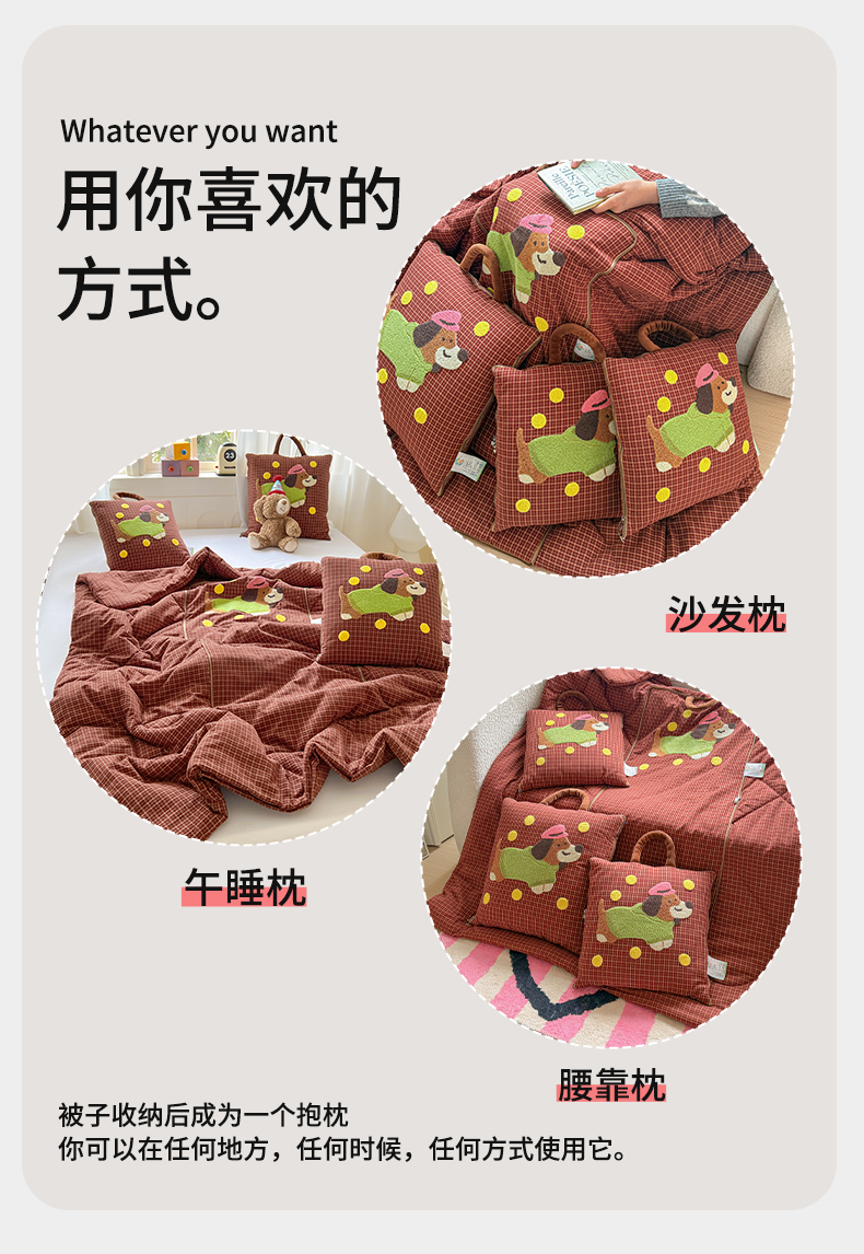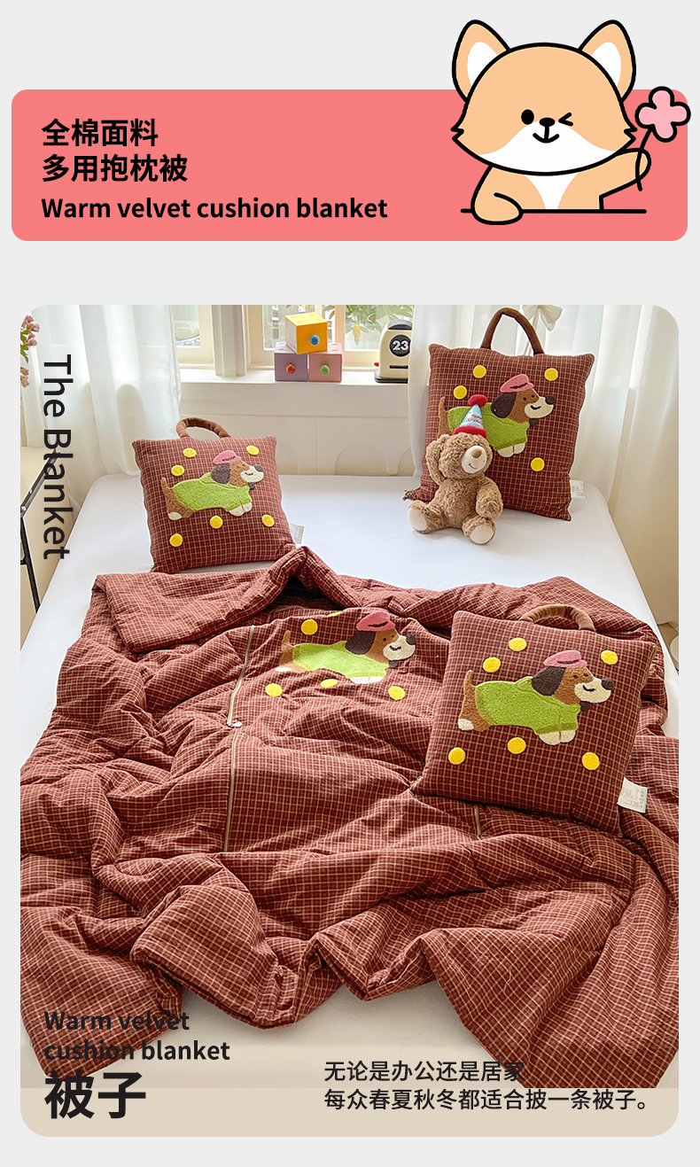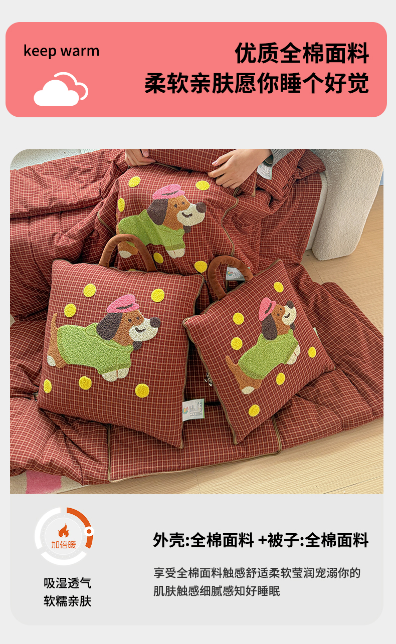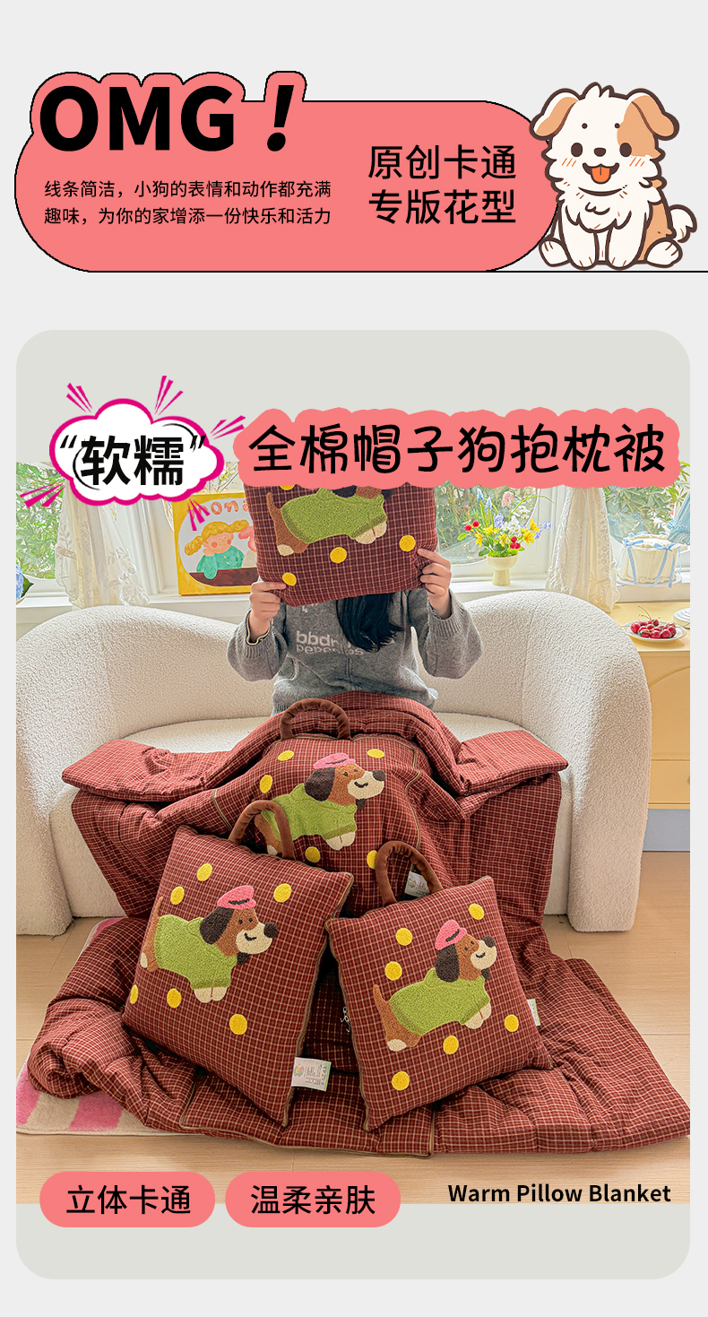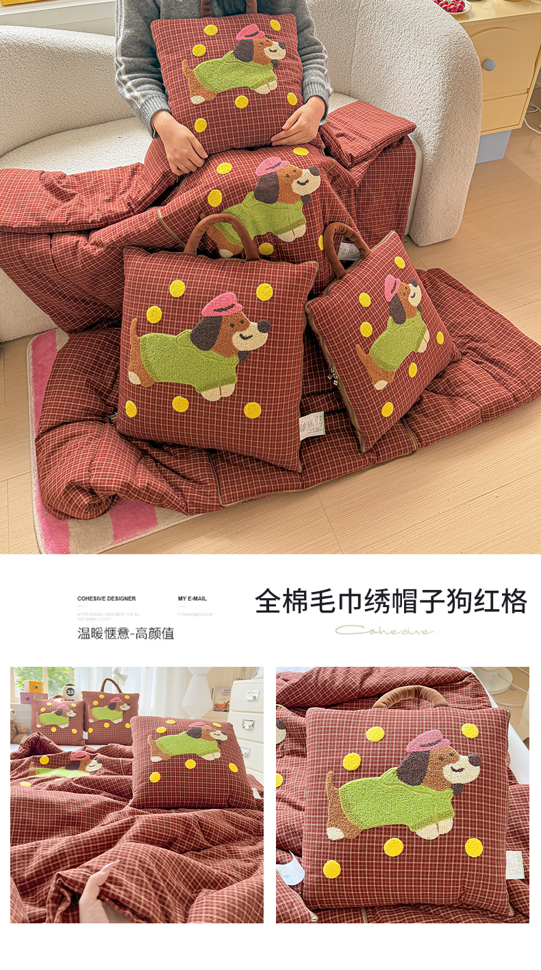 当前位置: 91家纺网 > 商品网购 > 居家日用 > 靠垫/抱枕 > (总)古本家居 2026新款全棉毛巾绣帽子狗抱枕被系列