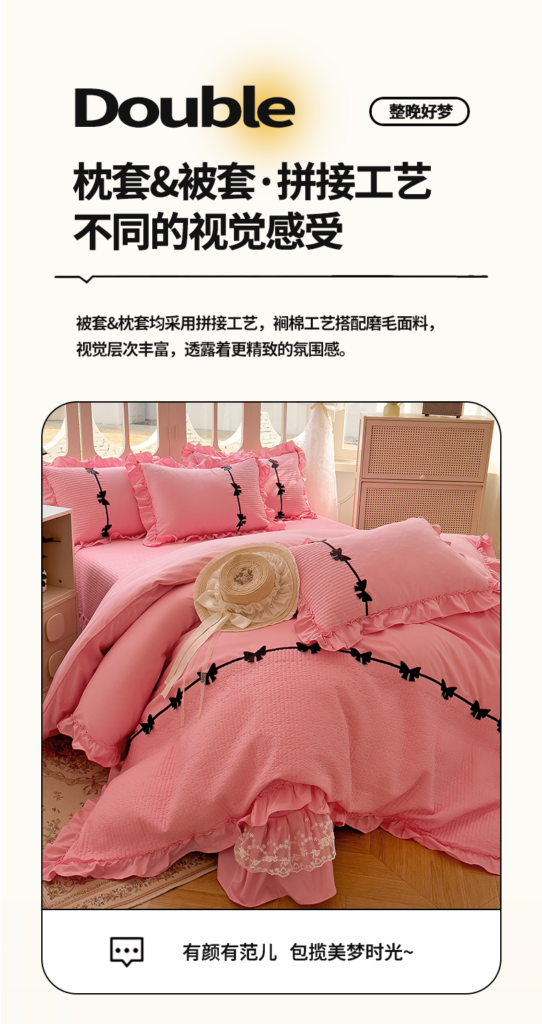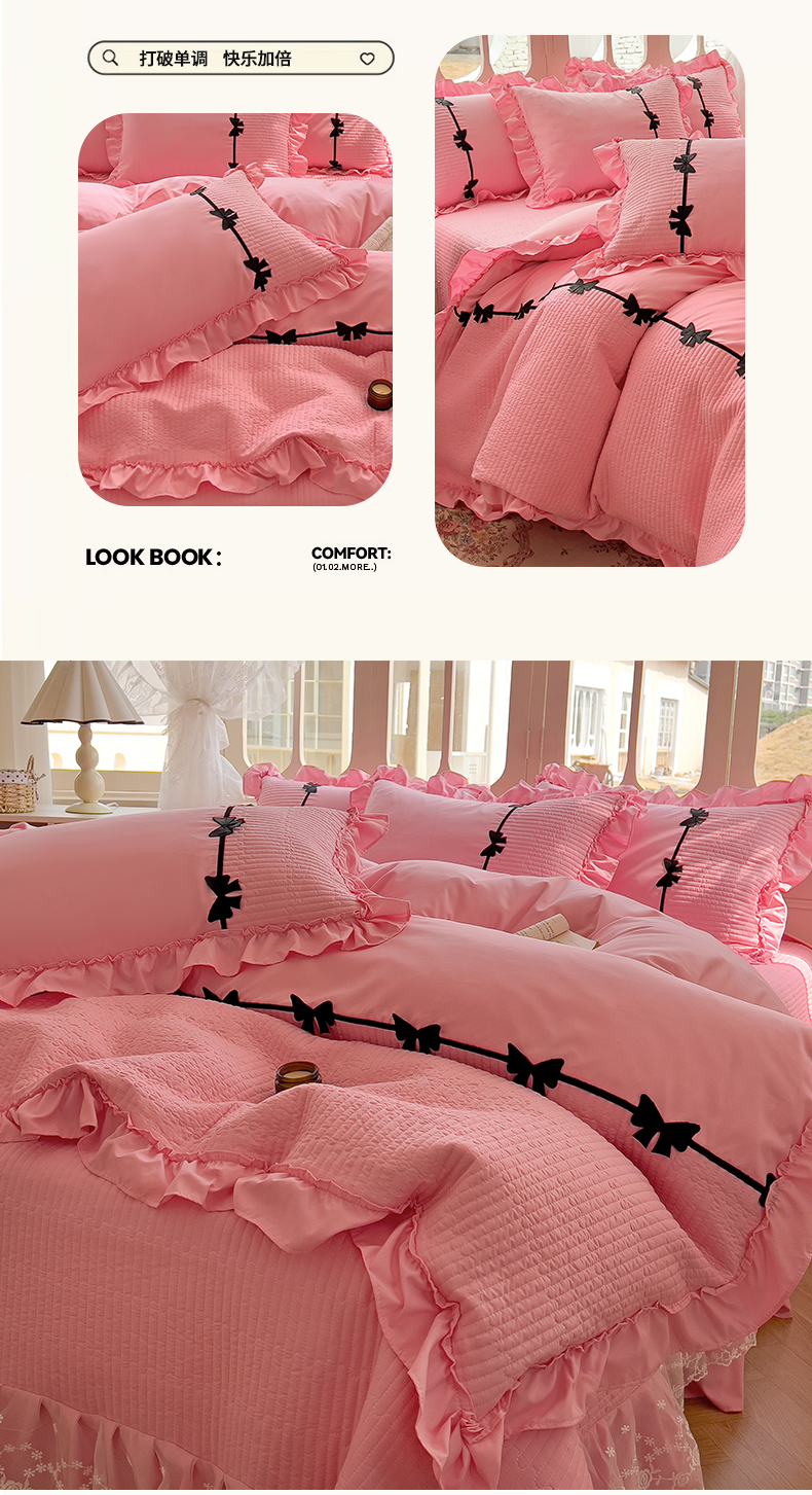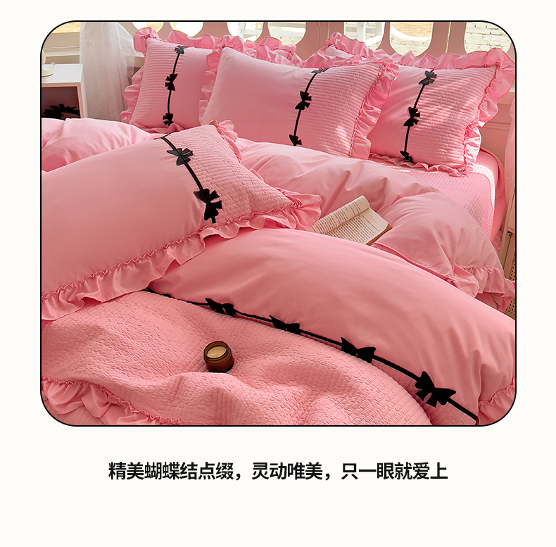 当前位置: 91家纺网 > 商品网购 > 床品套件 > 四件套 > 化纤活性四件套 > 芭比蔓家纺 2026新款床盖款四件套-真爱系列 床盖款真爱系列-粉色