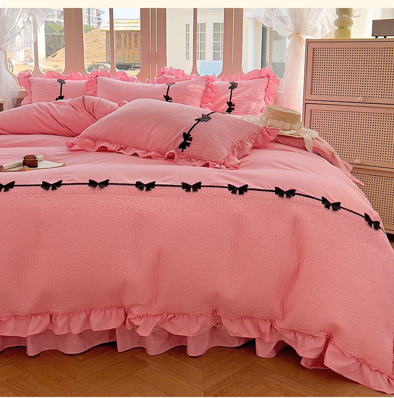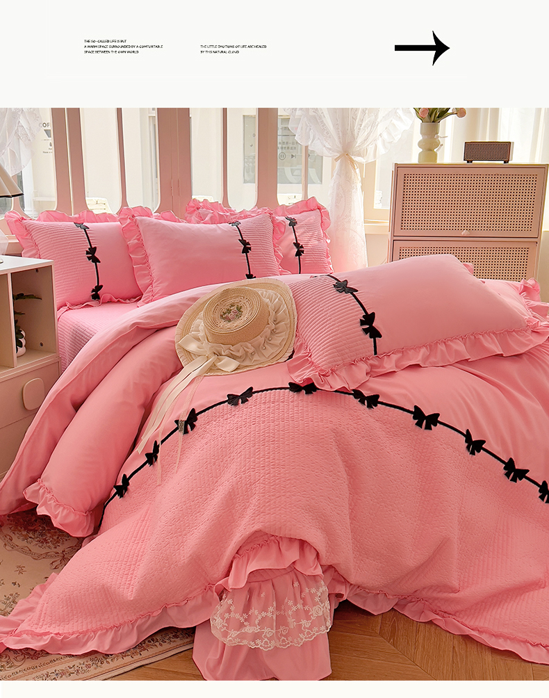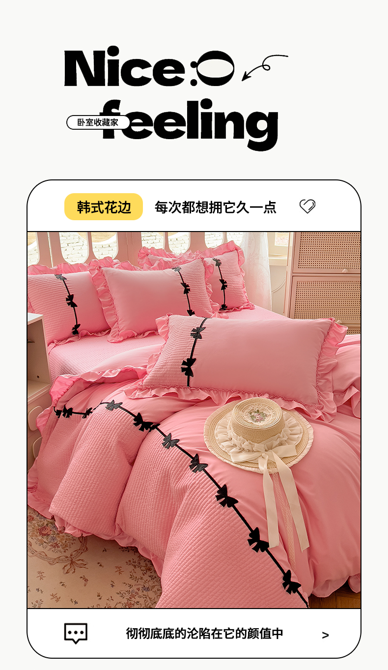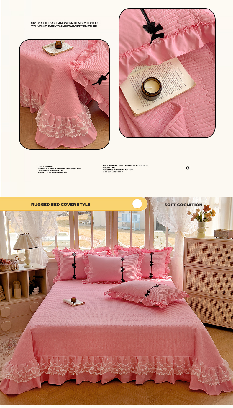 当前位置: 91家纺网 > 商品网购 > 床品套件 > 四件套 > 化纤活性四件套 > 芭比蔓家纺 2026新款床盖款四件套-真爱系列 床盖款真爱系列-粉色