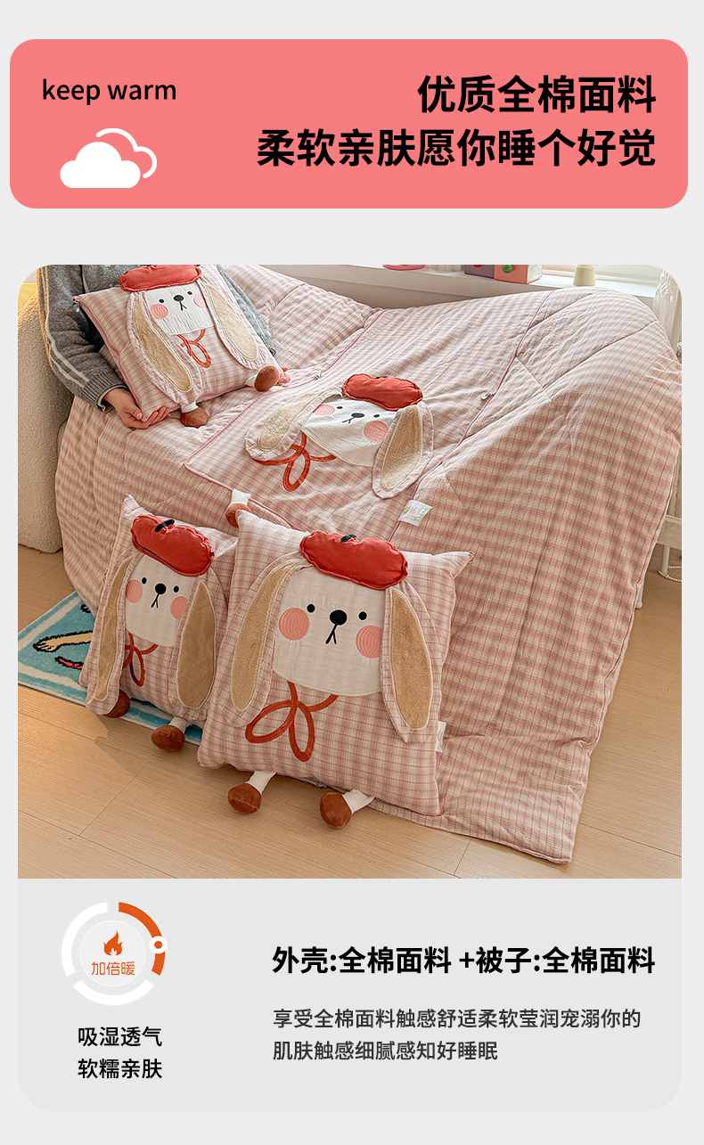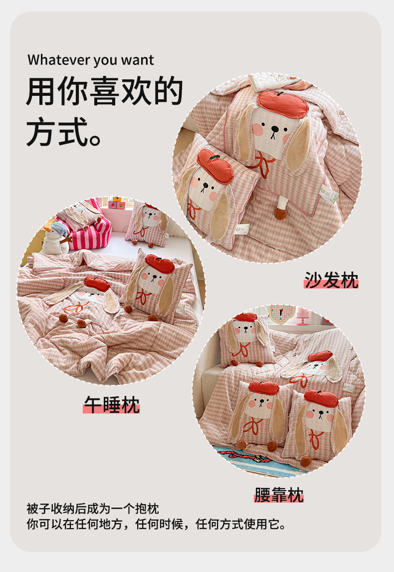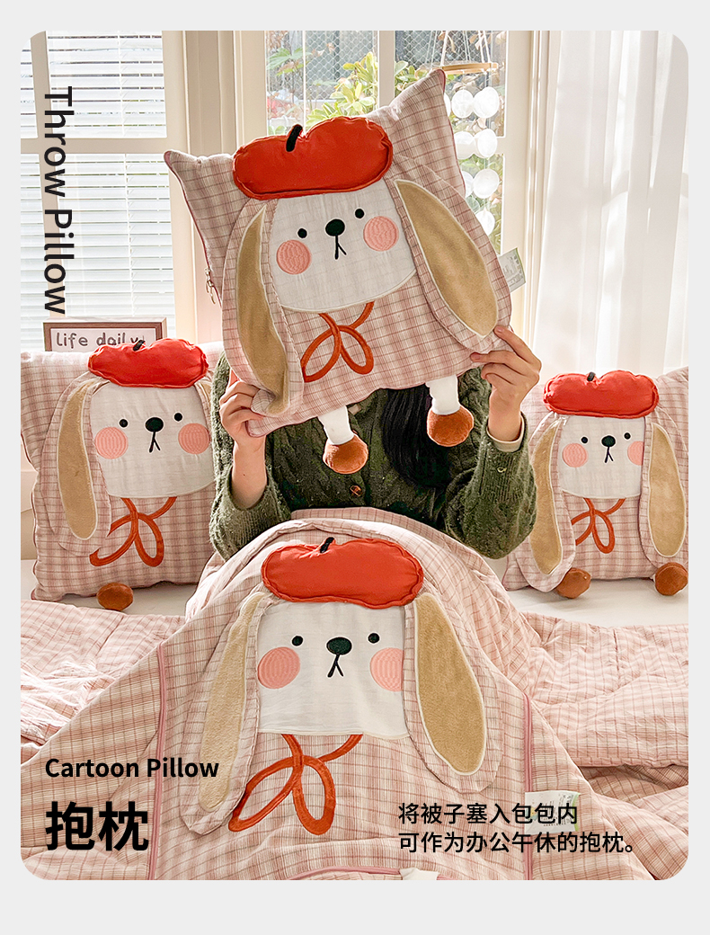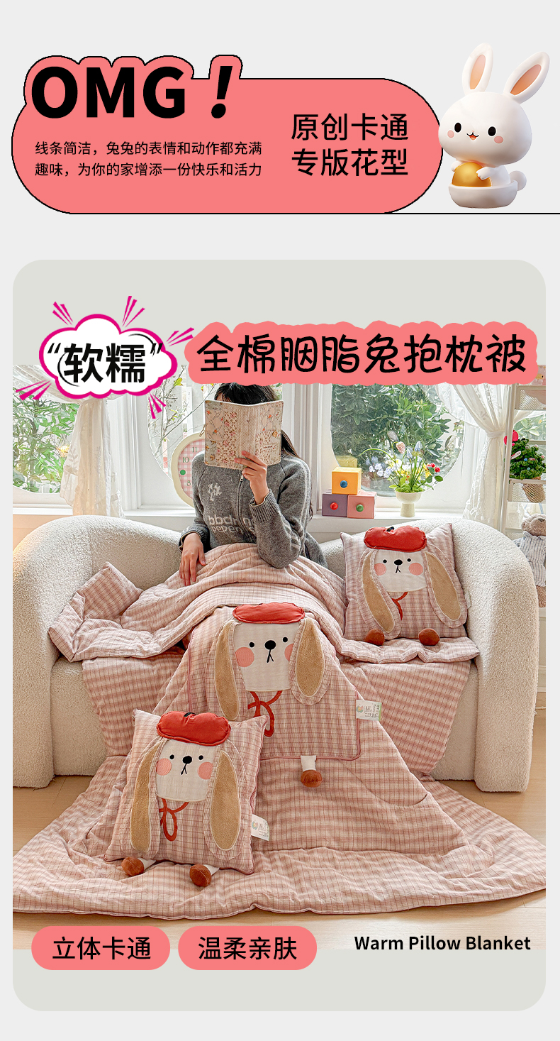 商品名称:(总)古本家居 2026新款全棉胭脂兔抱枕被系列