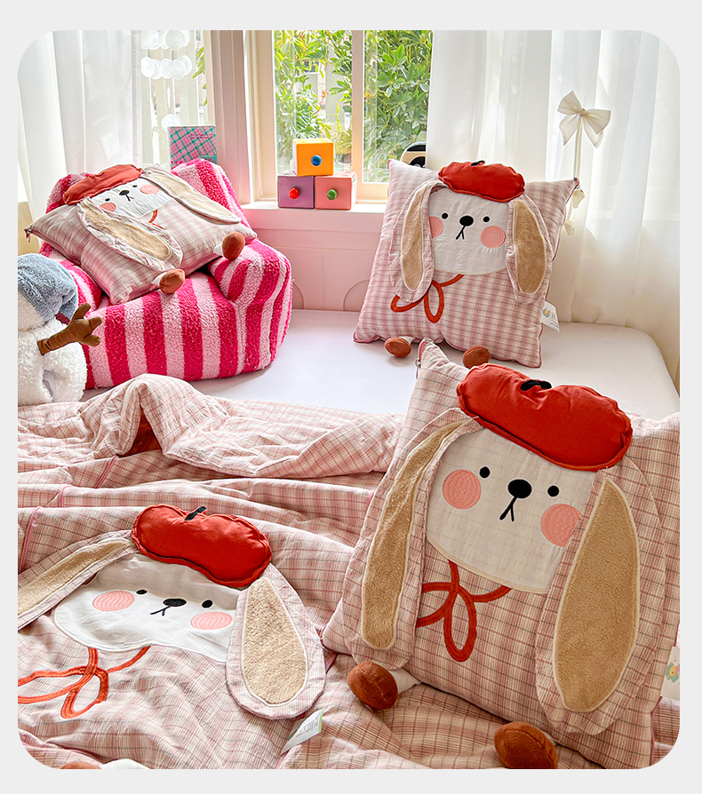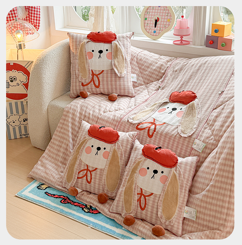 (总)古本家居 2026新款全棉胭脂兔抱枕被系列