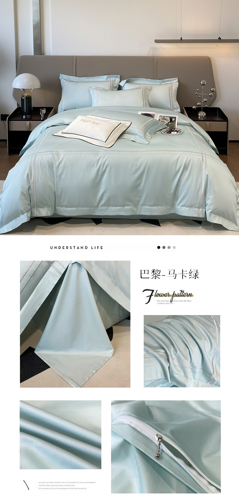 当前位置: 91家纺网 > 商品网购 > 床品套件 > 四件套 > 长绒棉四件套 > 家居1号家纺 2026新款50双股100支长绒棉四件套-巴黎 巴黎-马卡绿