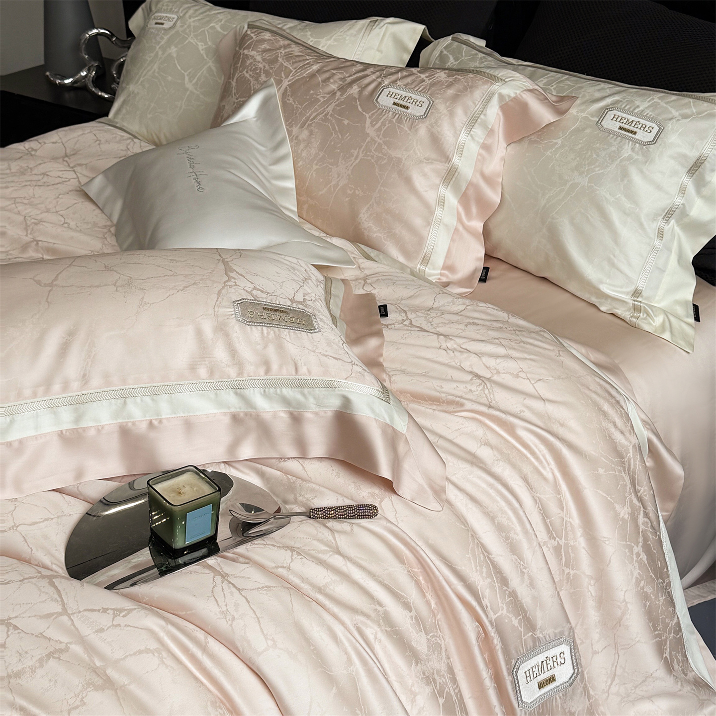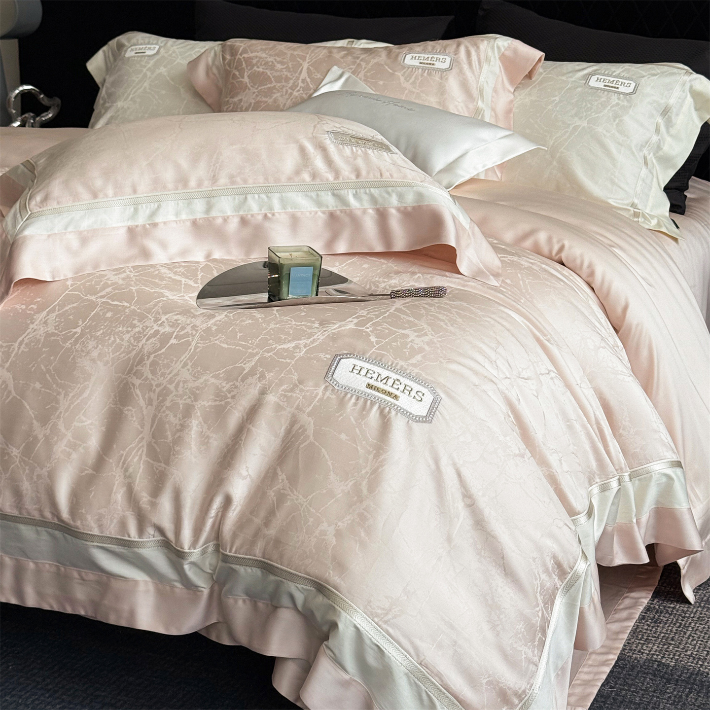 (总)馨蕊家居 2026新款100S全棉纯棉高定高精密刺绣四件套-赫本【淘宝 / 劵后控价:不低于 418/438】,高精密赫本-高级灰,高精密赫本-奶咖,高精密赫本-蔷薇粉