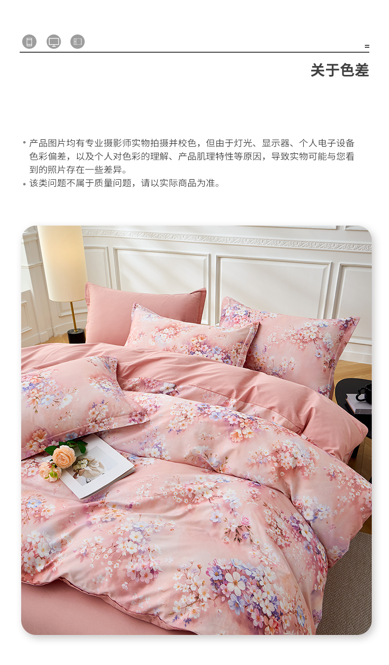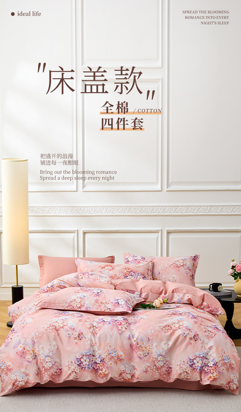 当前位置: 91家纺网 > 商品网购 > 床品套件 > 四件套 > 全棉普通四件套 > 元元家居(元元被业) 2026新款全棉纯棉13372床盖款四件套-印花款 月棠