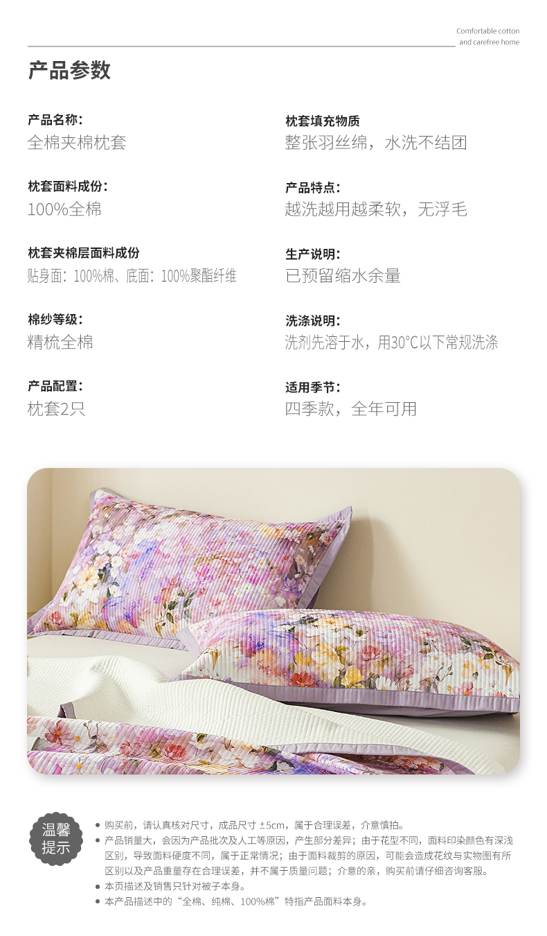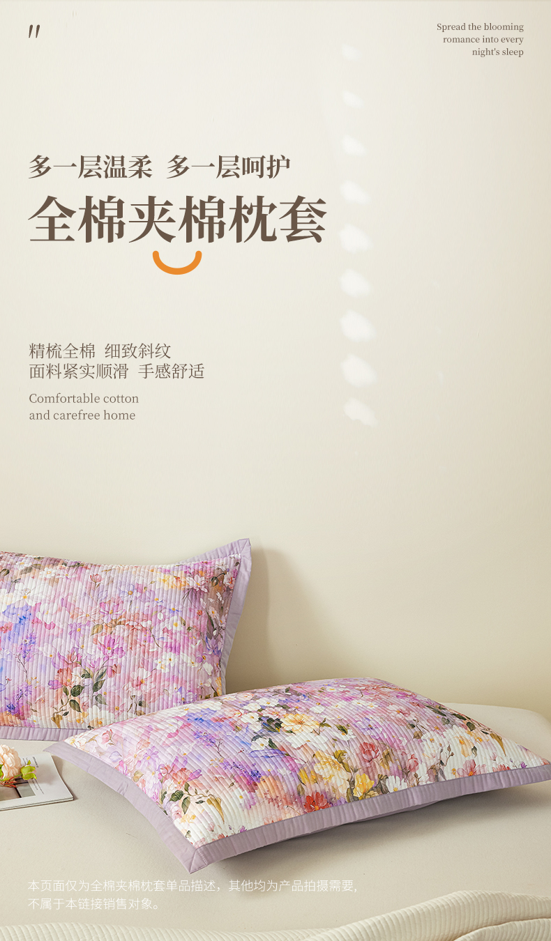 商品名称:元元家居(元元被业) 2026新款全棉纯棉13372系列夹棉枕套单件枕套单品单枕套-印花款 闪亮