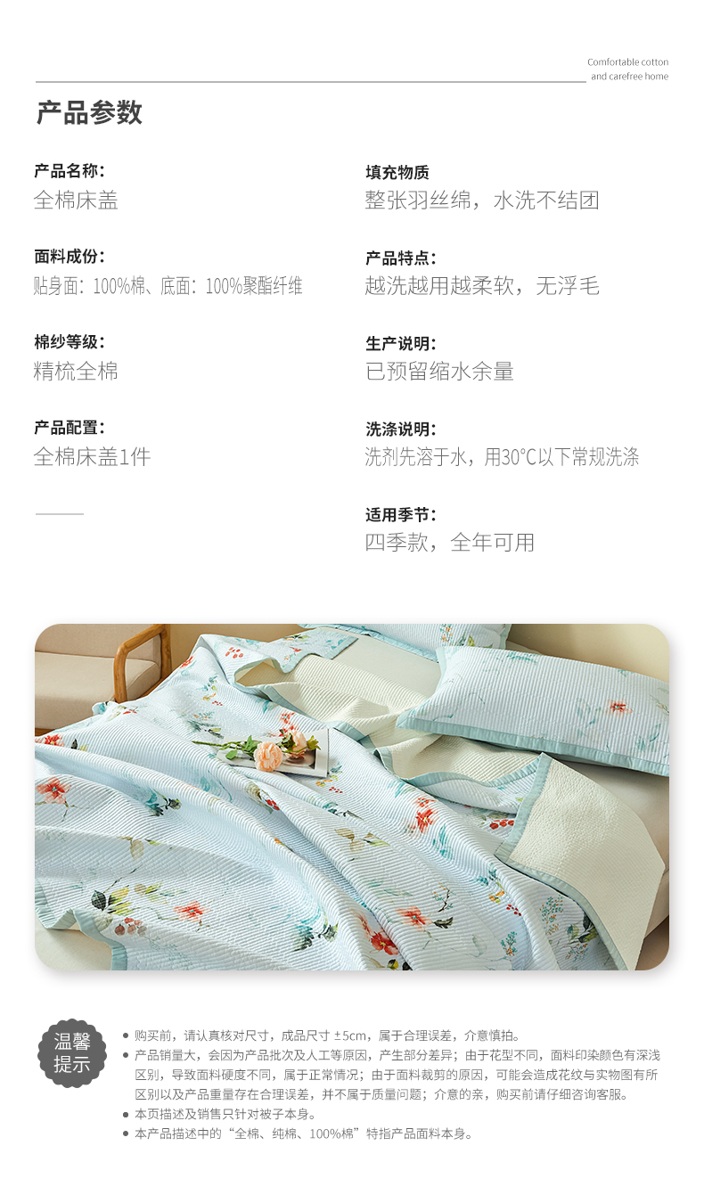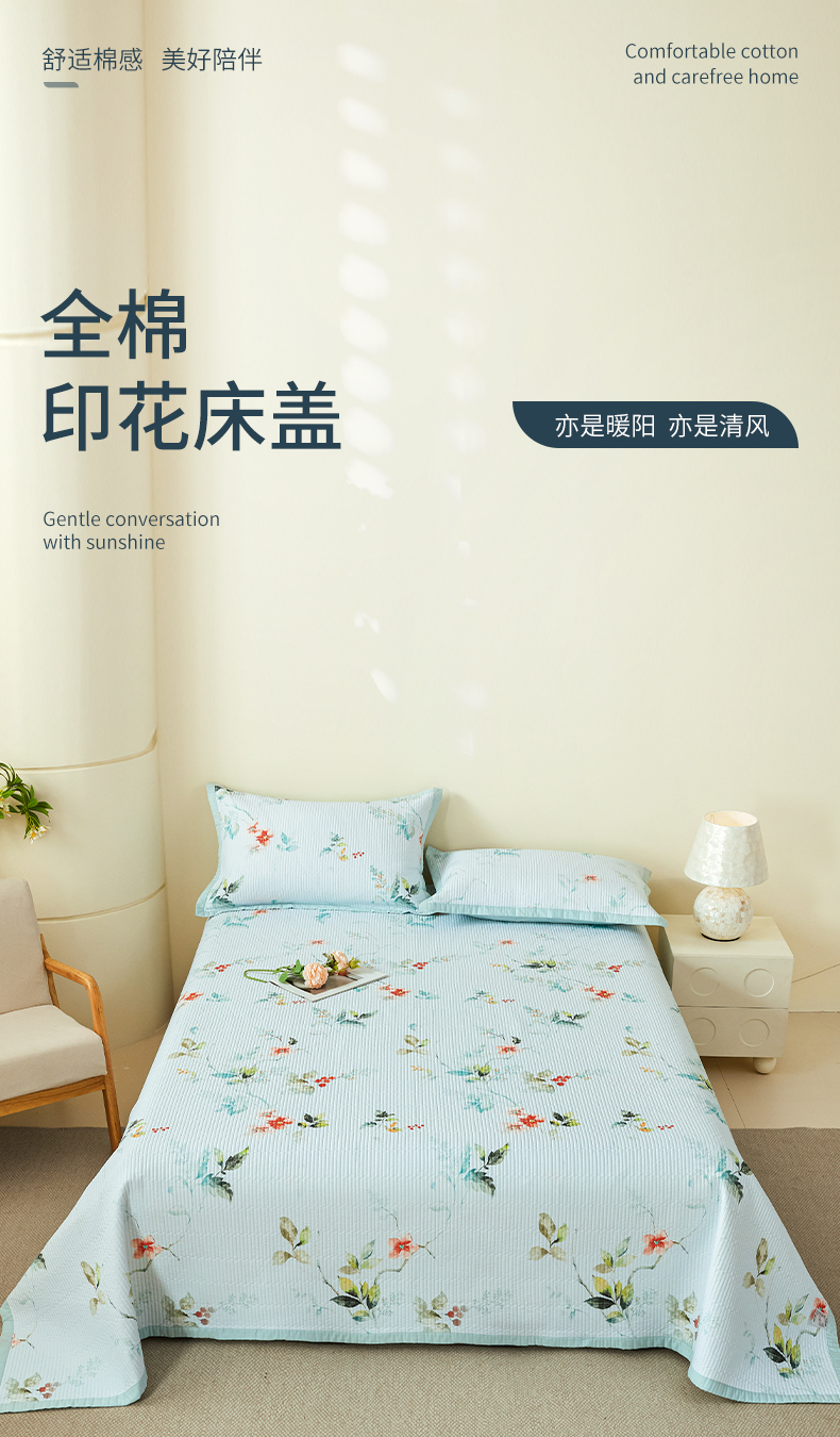 元元家居(元元被业) 2026新款全棉纯棉13372系列床盖单件床盖单品单床盖-印花款 有枝