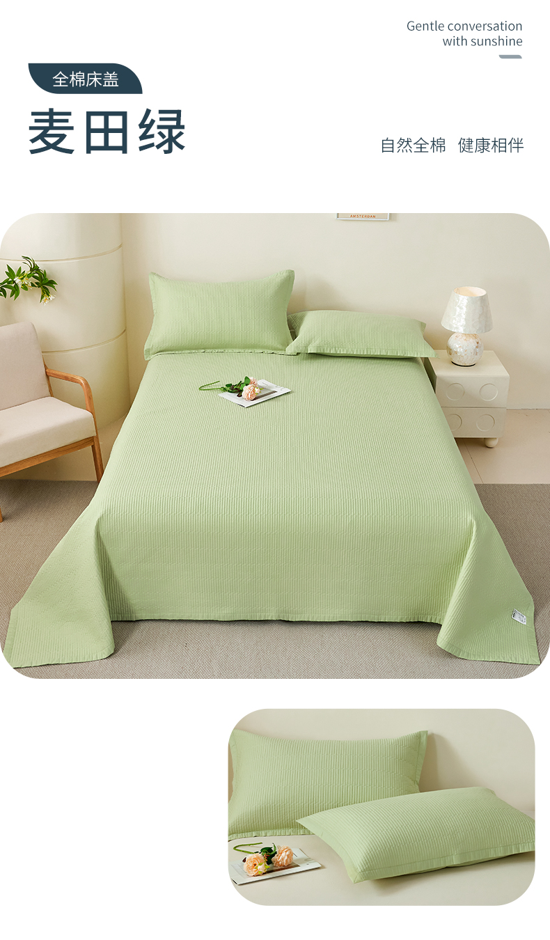 (总)元元家居(元元被业) 2026新款全棉纯棉13372系列床盖单件床盖单品单床盖-纯色款,果粉,罗兰紫,麦田绿,天梦蓝,炫彩粉,雅灰
