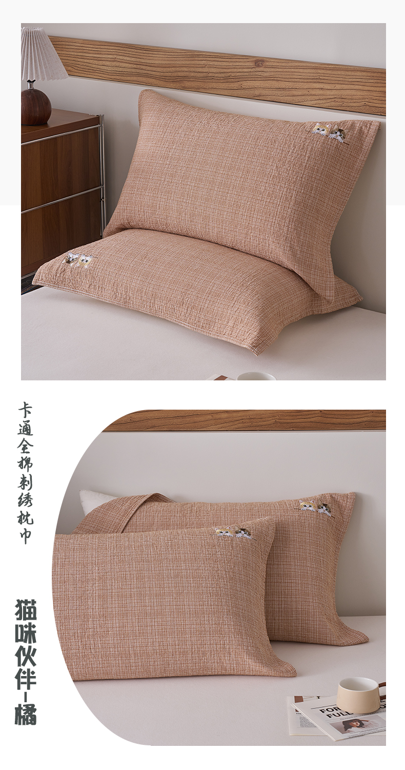 (总)百寐 2026百分百全棉A类色织枕巾52*75条纹格子美拉德色系纯棉吸汗枕巾风格二,色织 -米格,色织-红格,色织-蓝条,色织-绿格,色织-绿条,色织-浅绿格,色织-深咖格,色织-双拼绿格,色织-双拼米格,组合图(仅供展示不可下单)