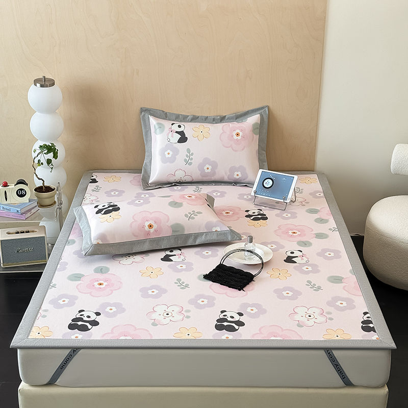 商品名称:懒猫家纺 2026新款高精密冰丝抗菌防螨床席床笠凉席 熊猫乐园-绿床席