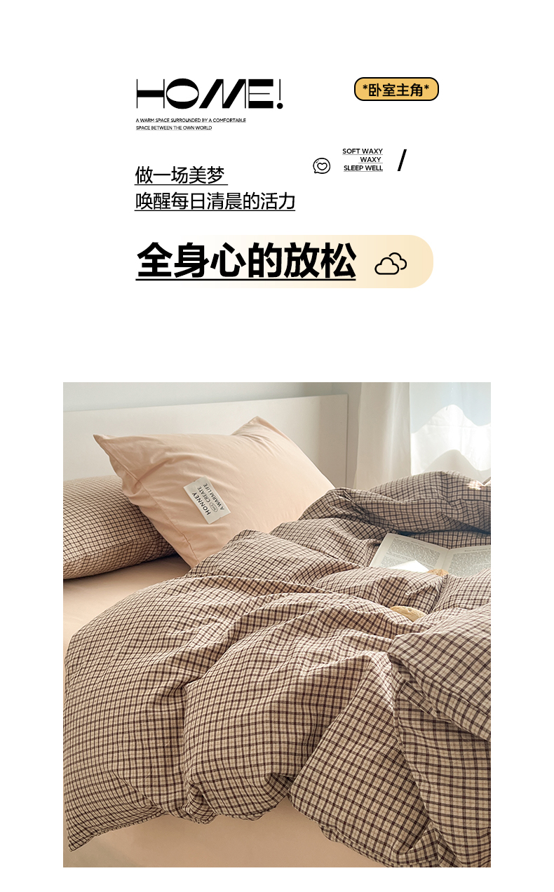 当前位置: 91家纺网 > 商品网购 > 床品套件 > 四件套 > 全棉普通四件套 > 早晨家纺 2026新款INS博主风A类全棉纯棉色织水洗棉格子四件套 知夏-浅咖条纹