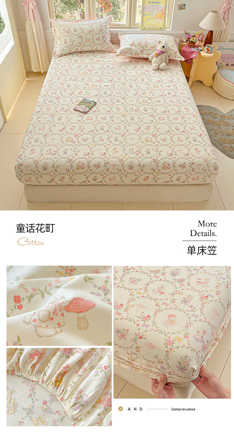 当前位置: 91家纺网 > 商品网购 > 床上用品 > 床笠 > 莱通家纺 2026春夏新款12868全棉印花四件套单品系列二-单床笠 童话花町