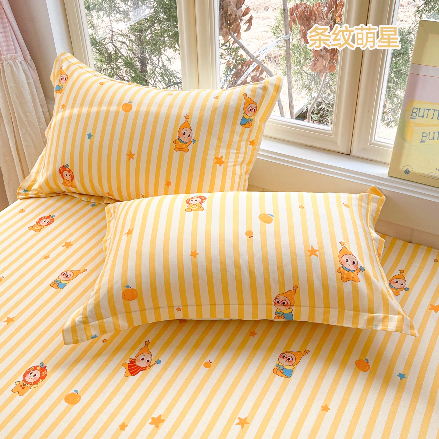 莱通家纺 2026春夏新款12868全棉印花四件套单品系列二-单枕套 条纹萌星