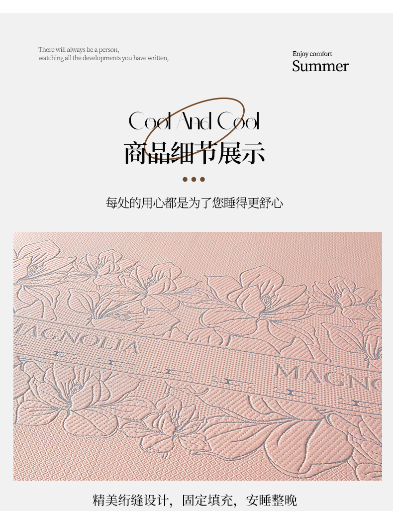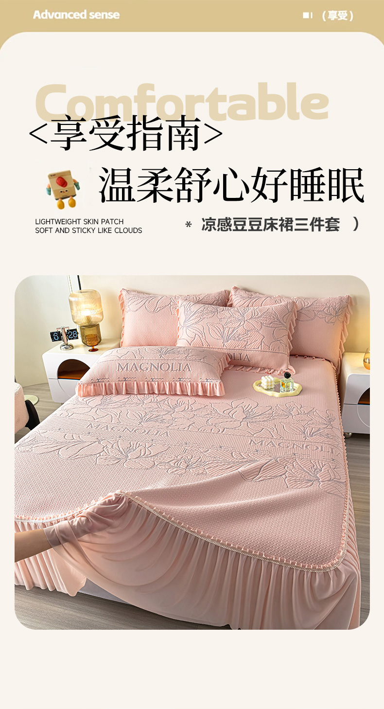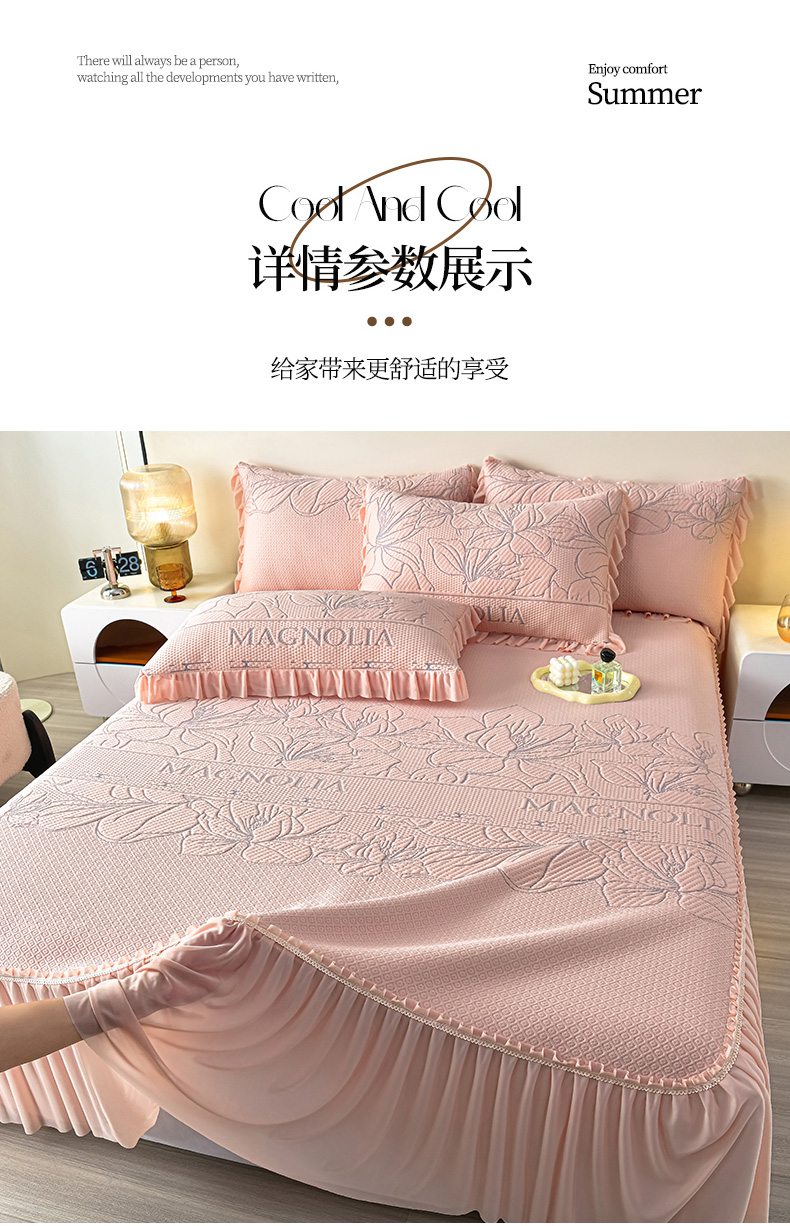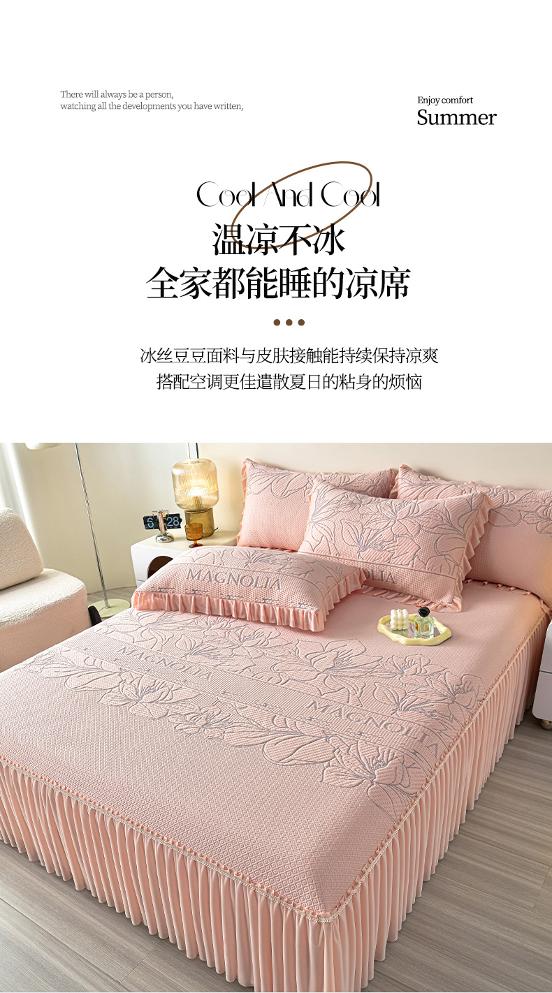 诺梵家纺 2026新款 pe 乙纶立体提花凉豆豆席凉席床裙款【控价1.5米119 ;1.8米129;2.0米139】半夏-粉
