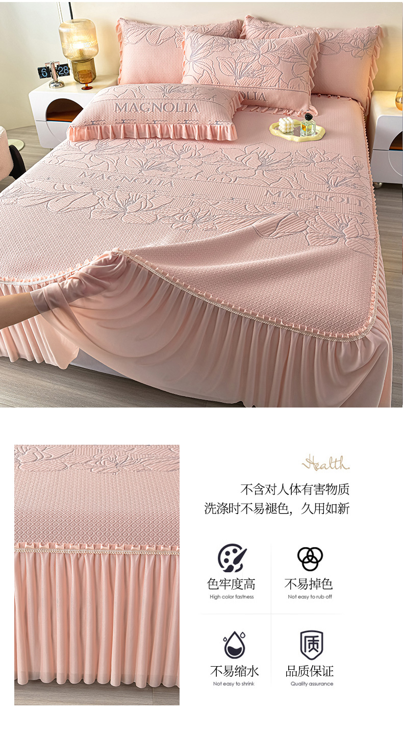 商品名称:诺梵家纺 2026新款 pe 乙纶立体提花凉豆豆席凉席床裙款【控价1.5米119 ;1.8米129;2.0米139】半夏-粉