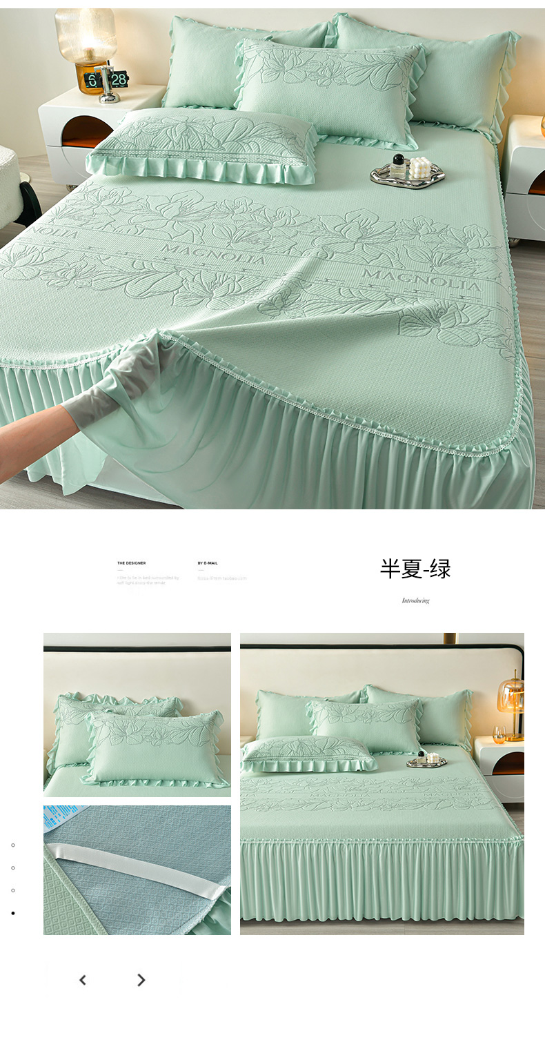 (总)诺梵家纺 2026新款PE冰豆豆冰丝凉席床裙款-玫瑰系列,红玫瑰,灰玫瑰,蓝玫瑰,绿玫瑰